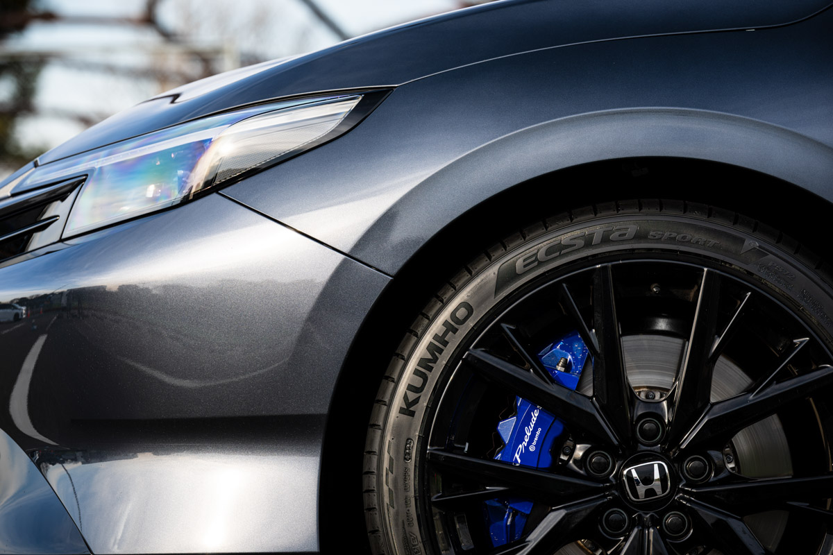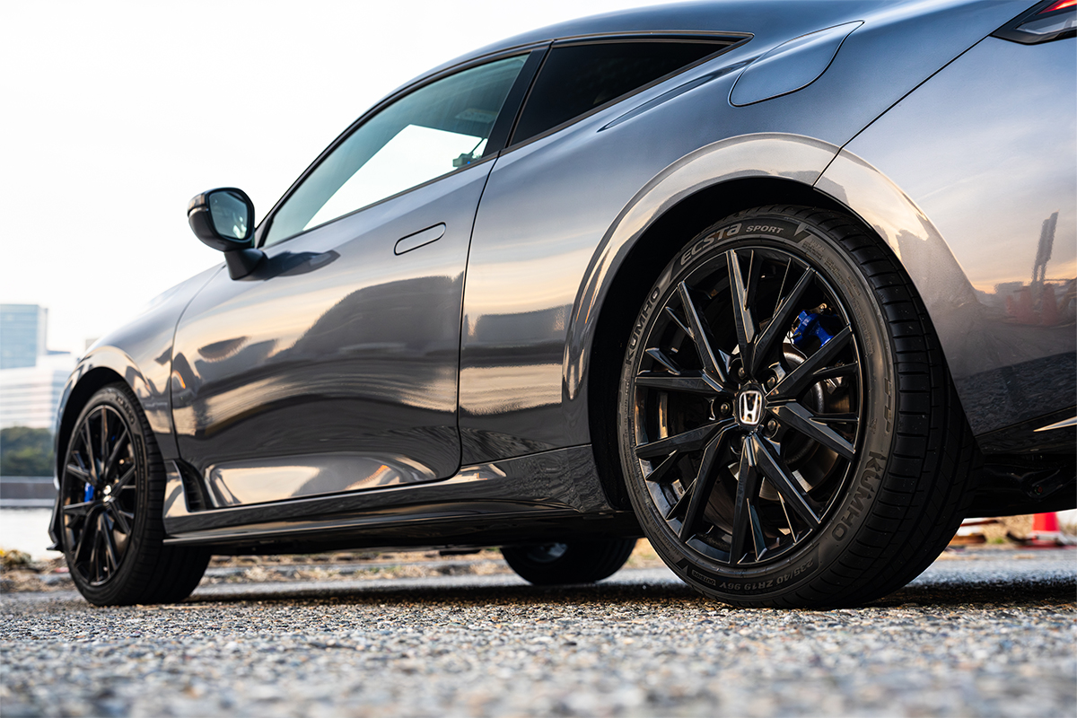 今回紹介するのは、KUMHOのプレミアムスポーツタイヤ「ECSTA SPORT」。組み合わせた車両はホンダ・プレリュード(メテオロイドグレー・メタリック)で、純正指定の235/40R19サイズを装着した