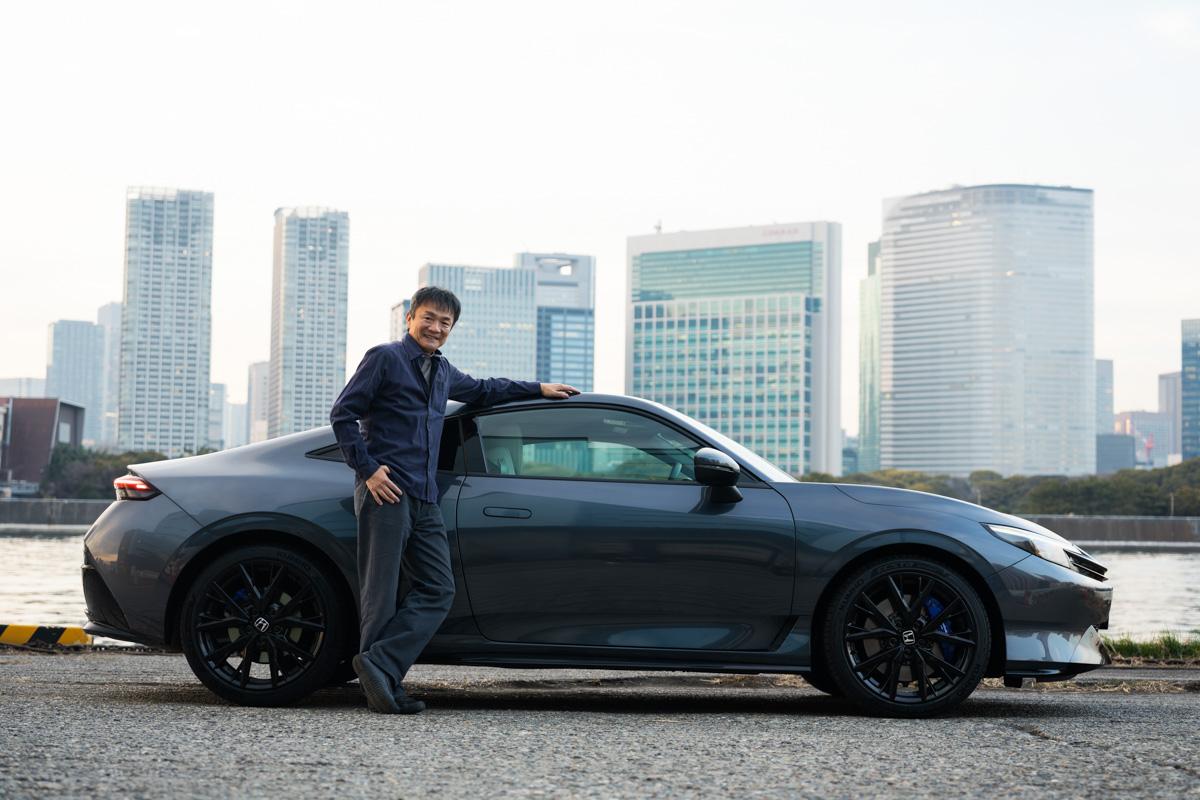 プレリュードとともに写真に収まる筆者(岡本幸一郎)。試乗会などでプレリュードには数多く乗ってきた
