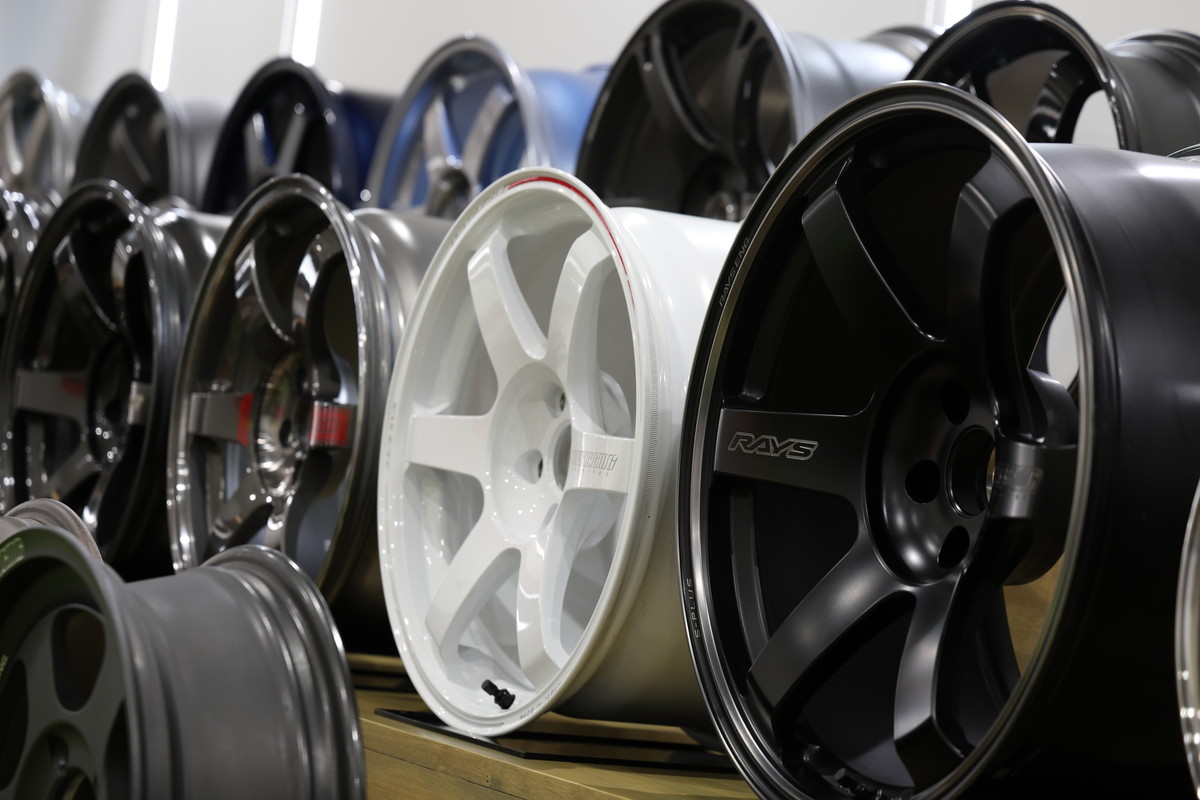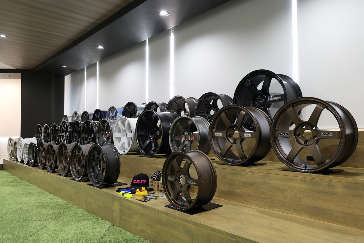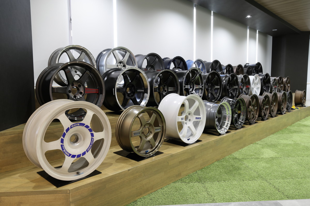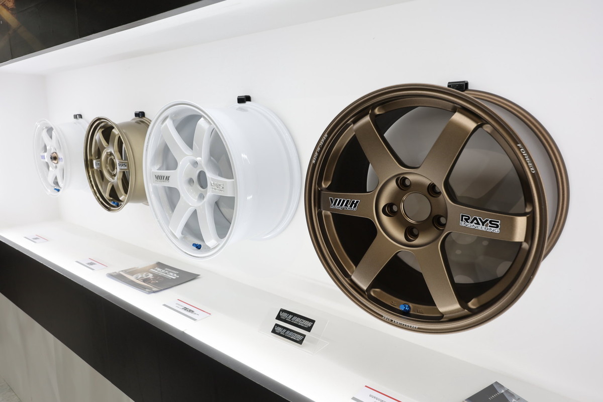 レイズ本社にて、ズラっと並んだ歴代TE37シリーズ[Photo:吉見幸夫]