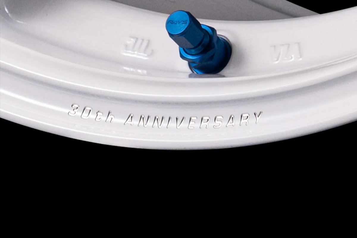 フランジ部に入った「30th ANNIVERSARY」のマシニングロゴ。バルブには初代のブルーを採用。写真のカラーは「ホワイト」