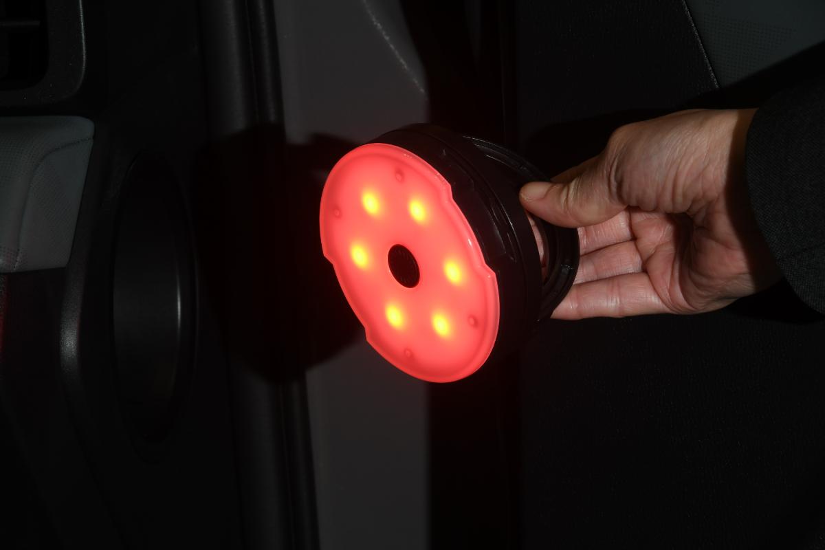 設計・開発段階から用品も一緒に企画を行った「サイドストレージランタン」はダッシュボードのサイド面に収納することができる