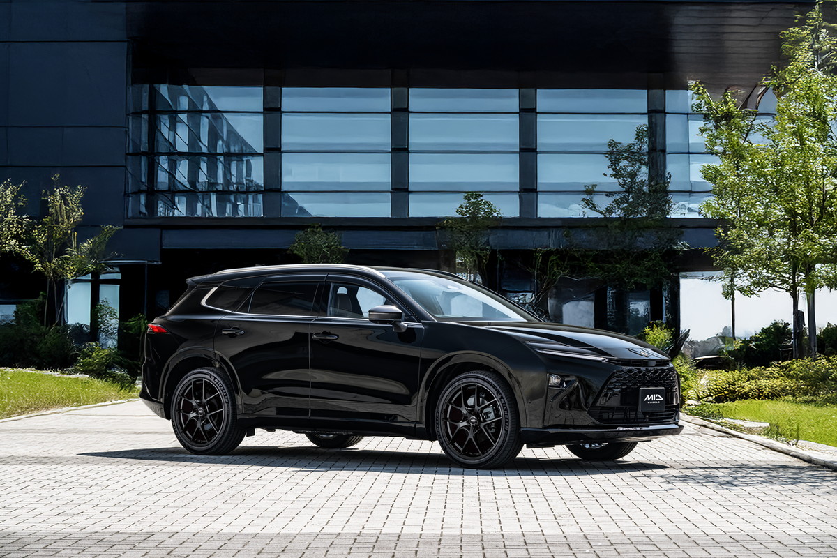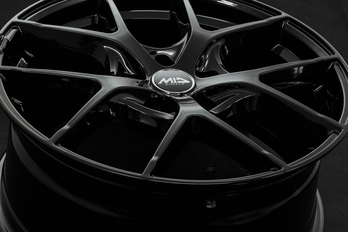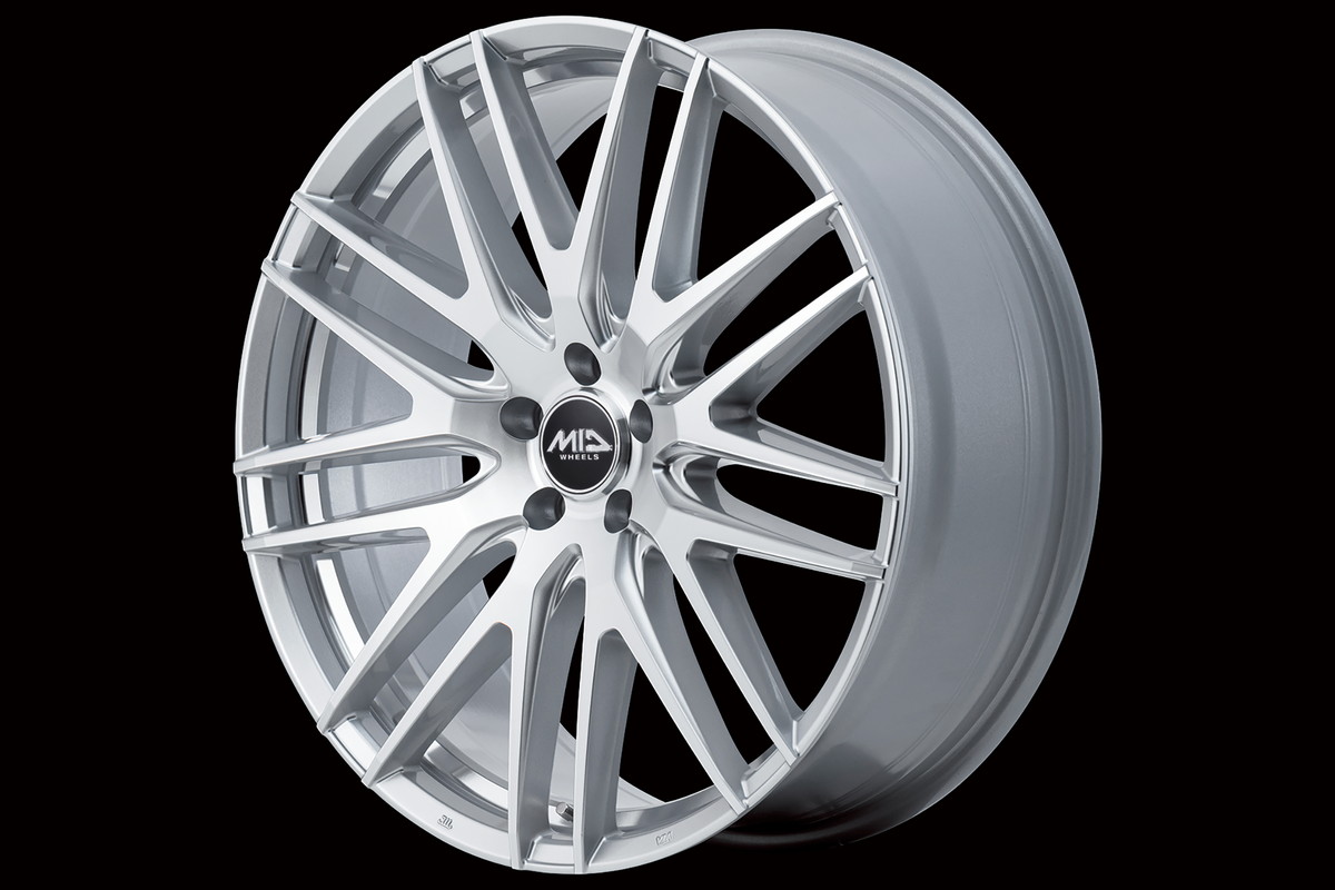 MID EXCLUSIVE 029Fを履いたトヨタ「ヴェルファイア」。スポークエンドをリム上に乗せ、ホイールが表現できる範囲をギリギリまで生かした視覚的な突き抜け感は、SUVやミニバンなどの足元にマッチしている。カラーはセミグロスガンメタ(SGG)