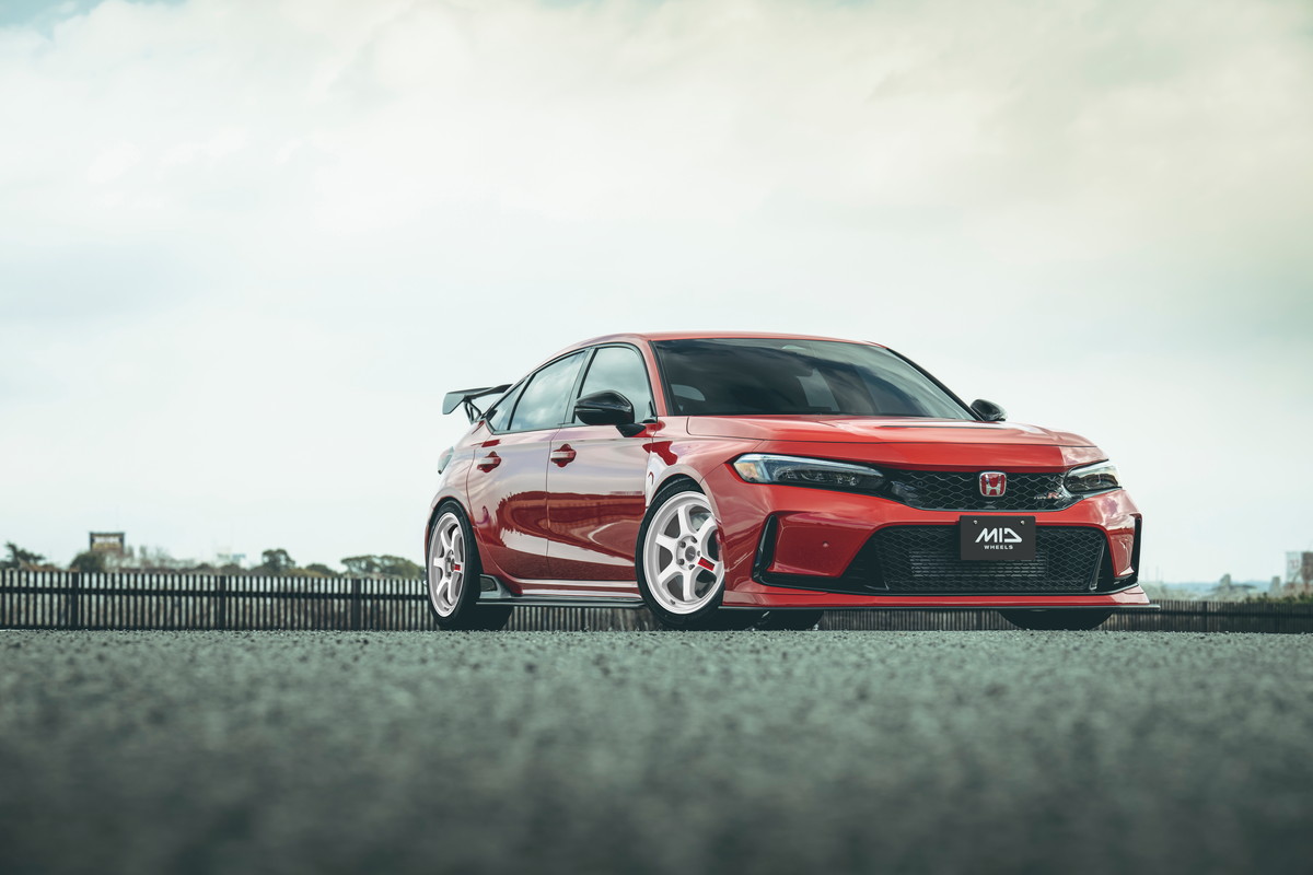 MID RACING R06のホワイト(WHI)を装着したホンダ「シビック タイプR」