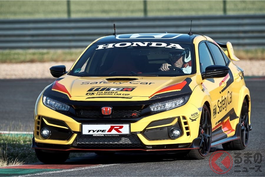 ガチ速そうな黄色いヤツ登場! ホンダ「シビックタイプR」がセーフティカーで爆走