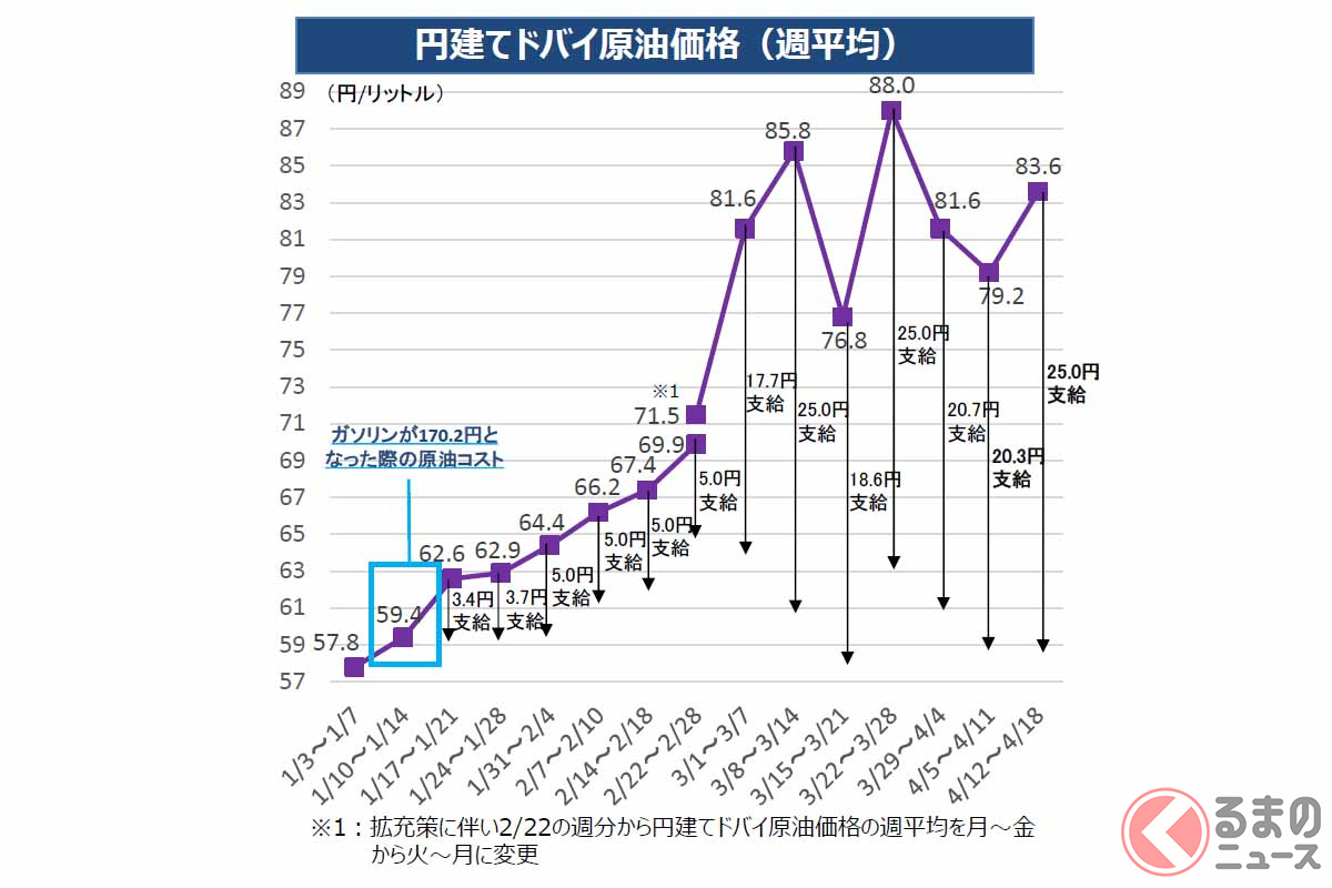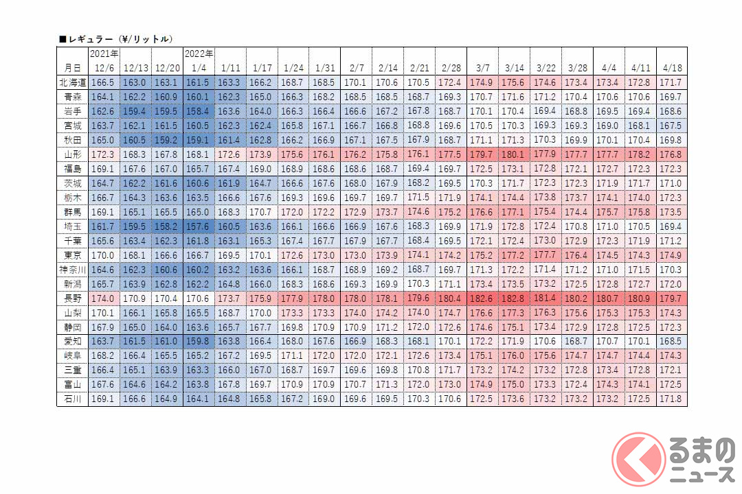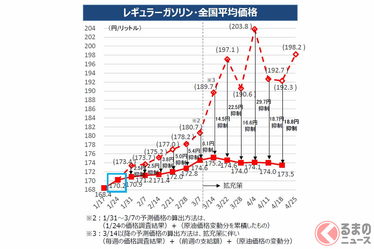 レギュラー平均173.5円! ガソリンは2週連続値下がりするも、補助金は再び上限に引き上げへ