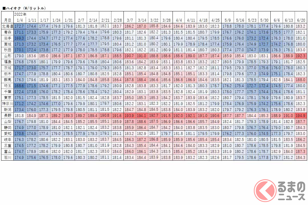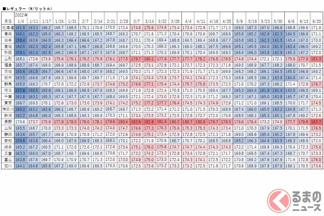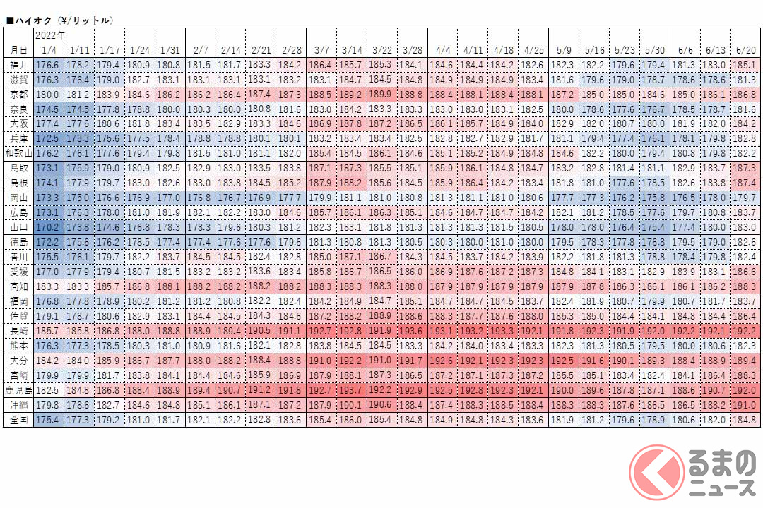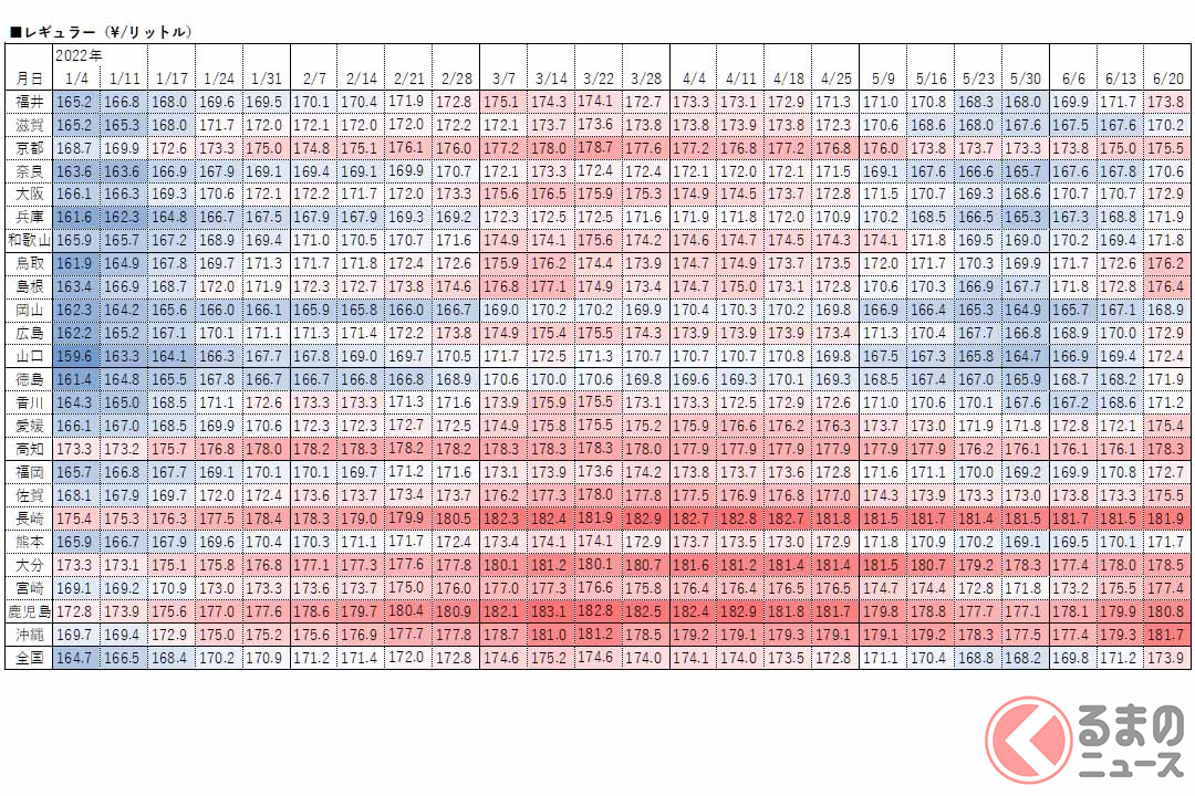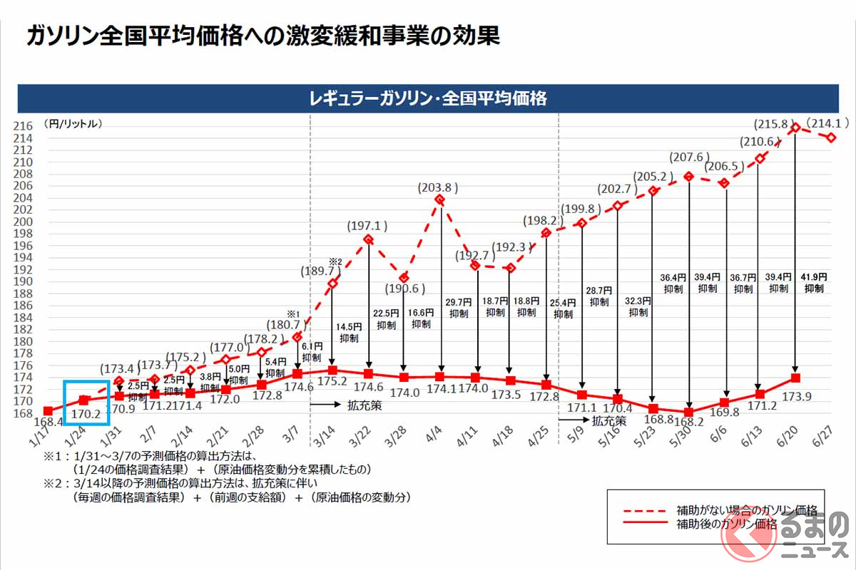 補助金なければ215円! ガソリン3週連続値上がり レギュラー平均は173.9円に
