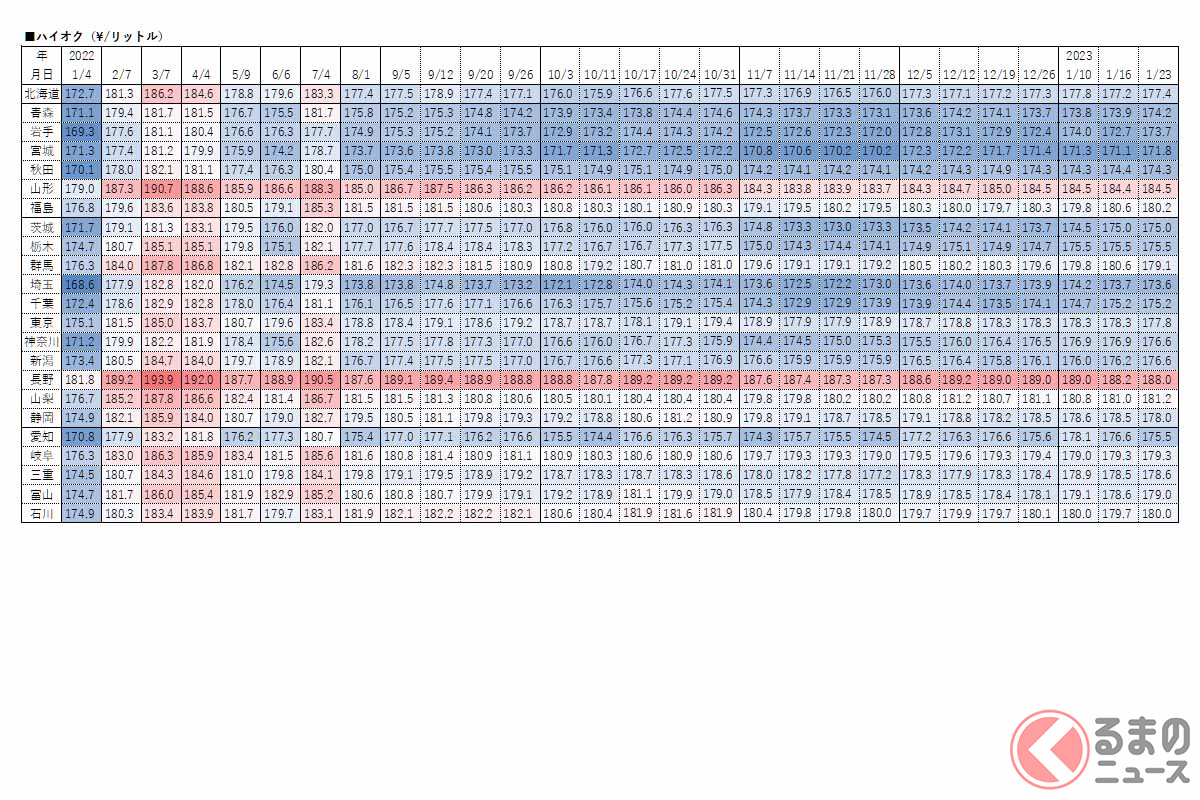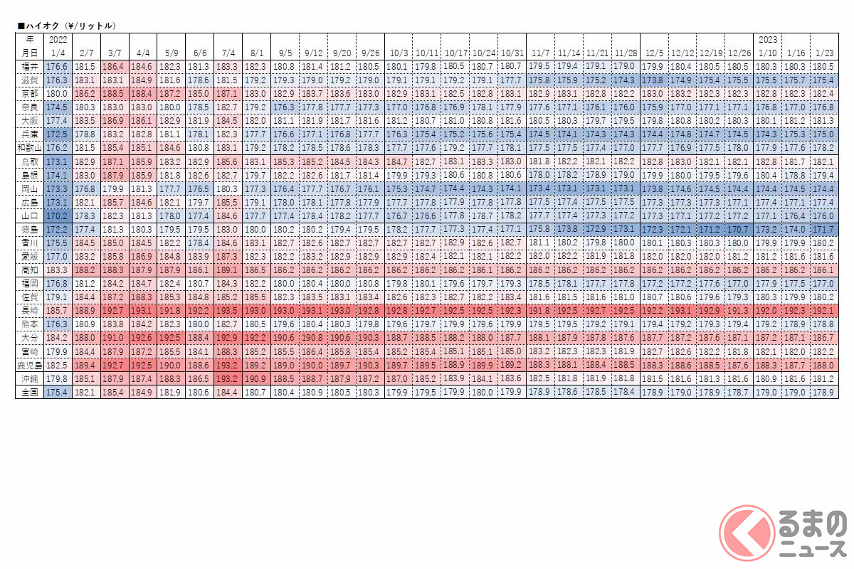 ガソリン価格ほぼ横ばい! レギュラー平均168.1円 「最安県」は160円台で推移