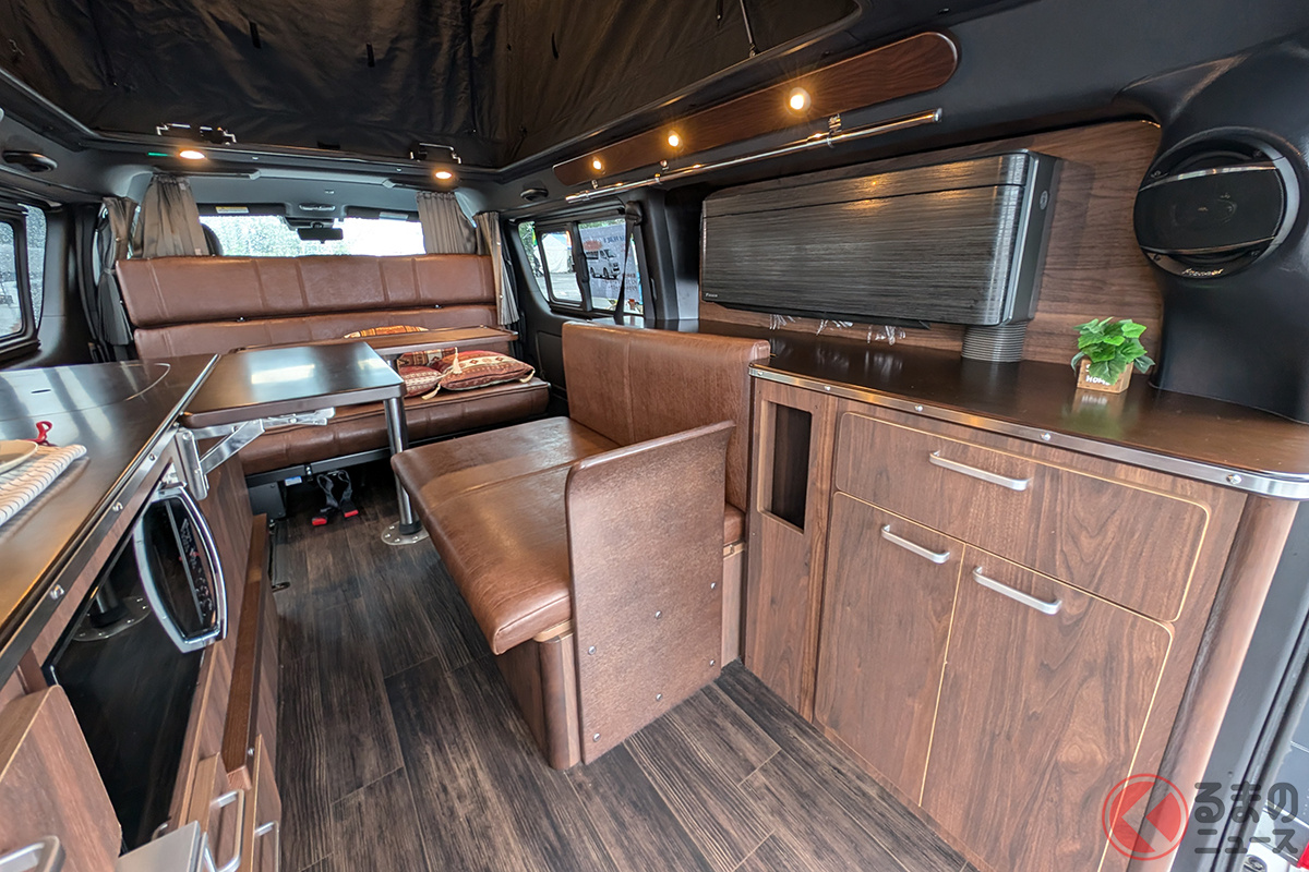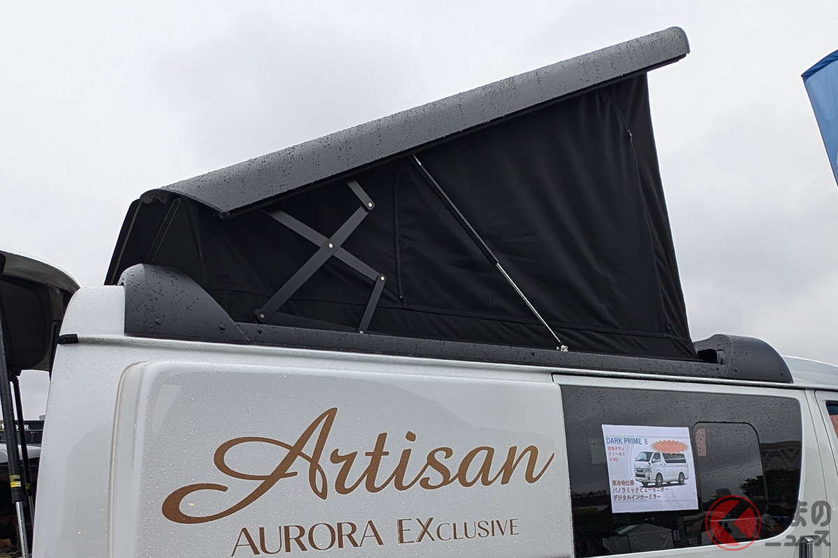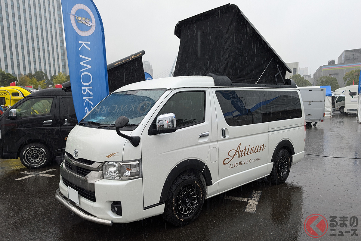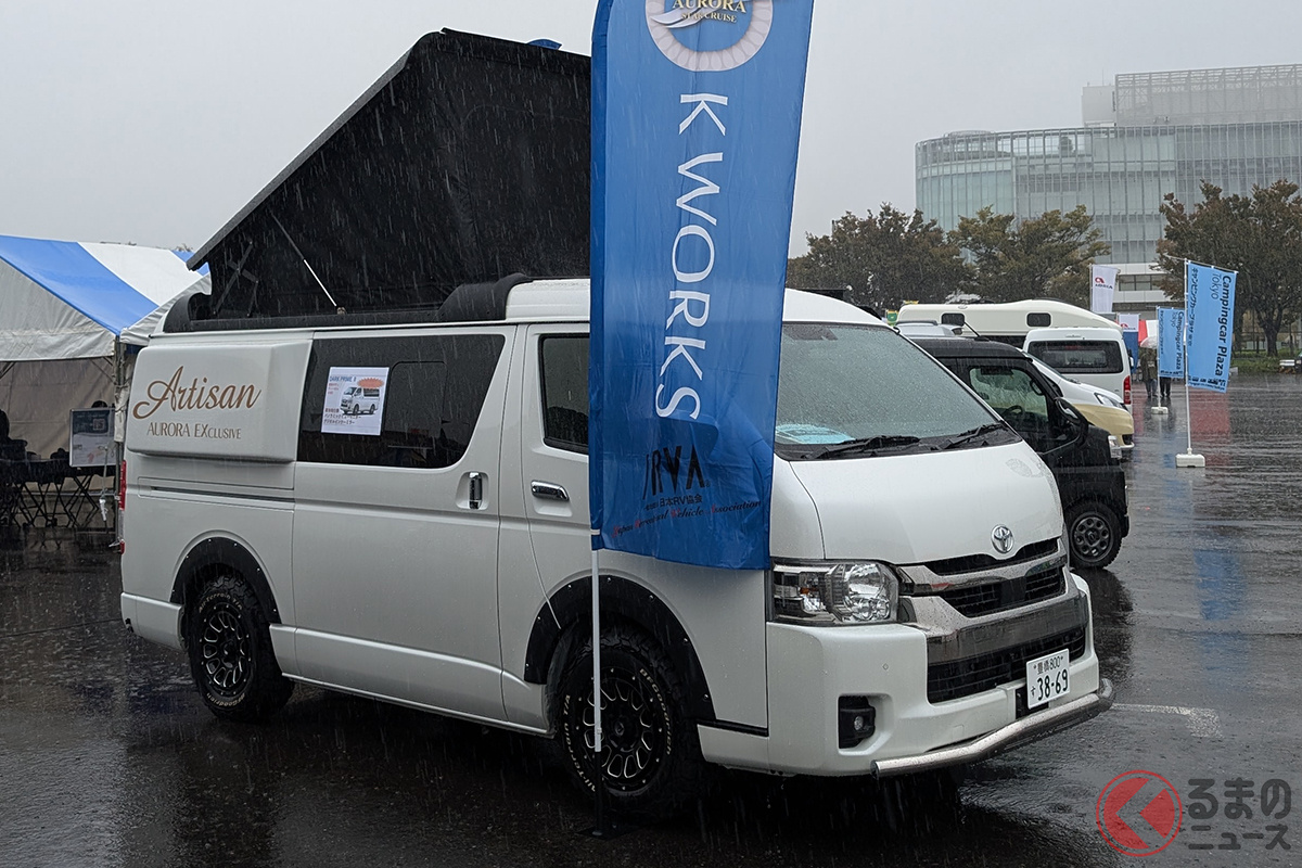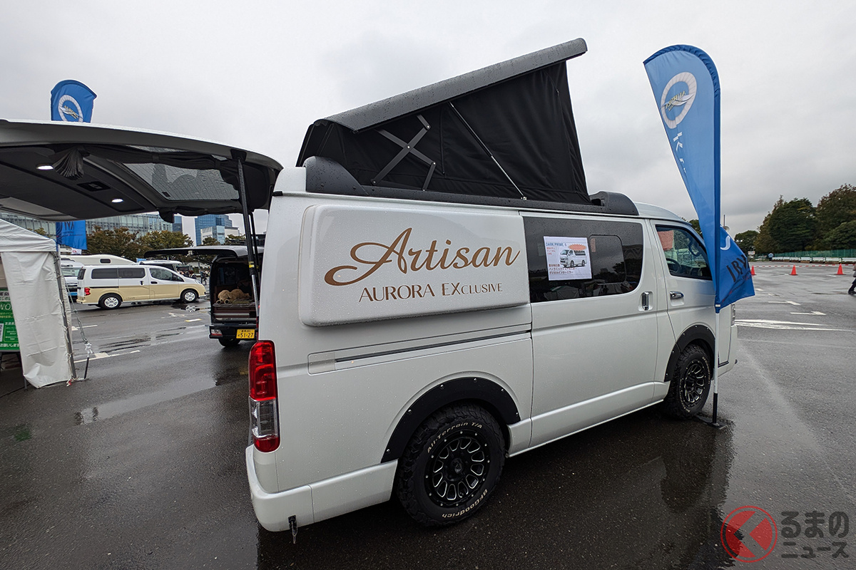 愛知県豊橋市に本社を構えるケイワークスは、「お台場キャンピングカーフェア 2024」にトヨタ「ハイエースバン」(ワイドボディ・ミドルルーフ車)をベースにしたキャンピングカー「オーロラエクスクルーシブ アーチザン Type I」を実車展示しました。どのようなクルマなのでしょうか。