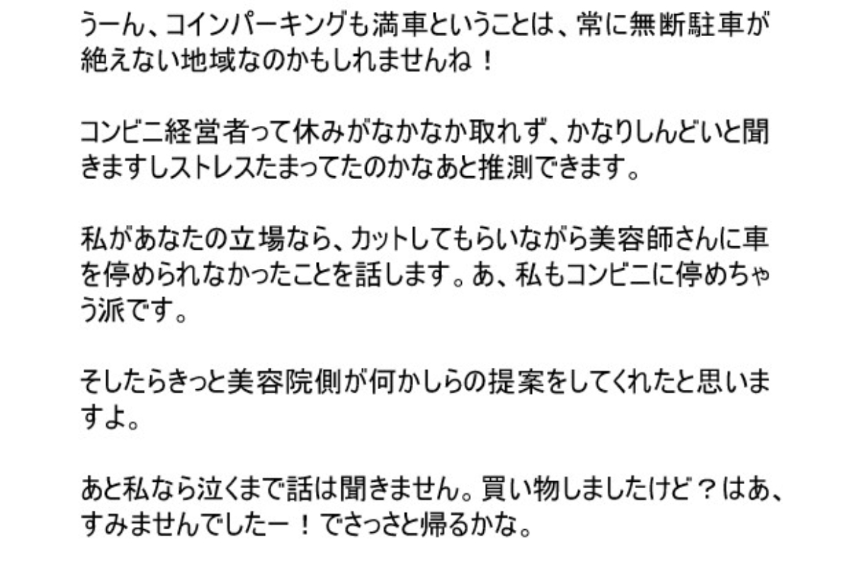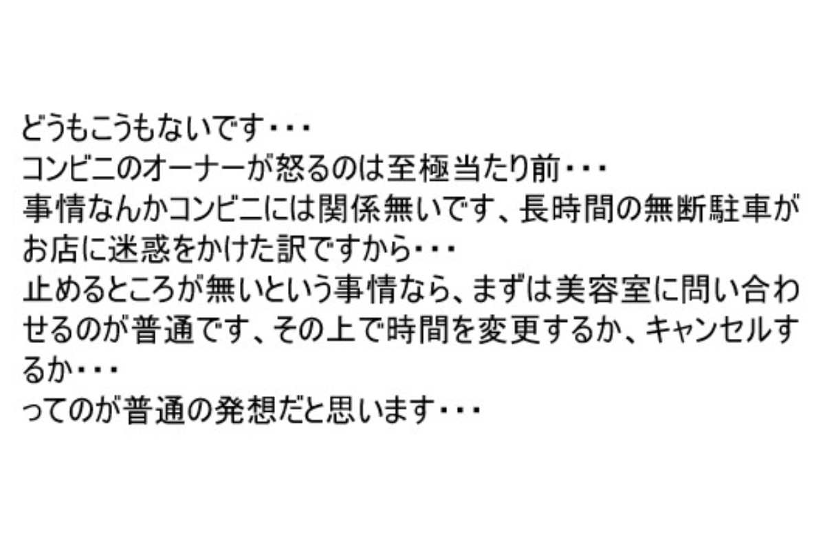 「美容室が満車で、仕方なくコンビニに停めたら怒られました。買い物もしたのに…どう思います?」投稿に回答殺到!?「当たり前」「事前に相談しろ」の声も!? 実際ルールはどうなのか