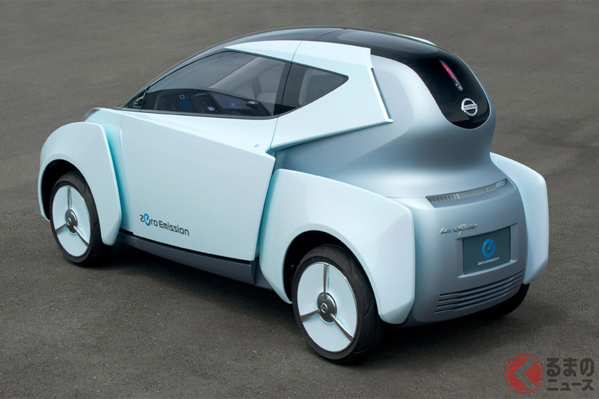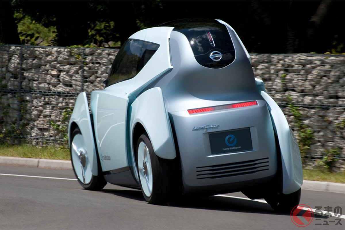 全幅わずか1.1m! 日産の「“めちゃ細”四輪車」がスゴい! 前後2人乗り“タンデム仕様”が斬新すぎる「ランドグライダー」どんなモデル?