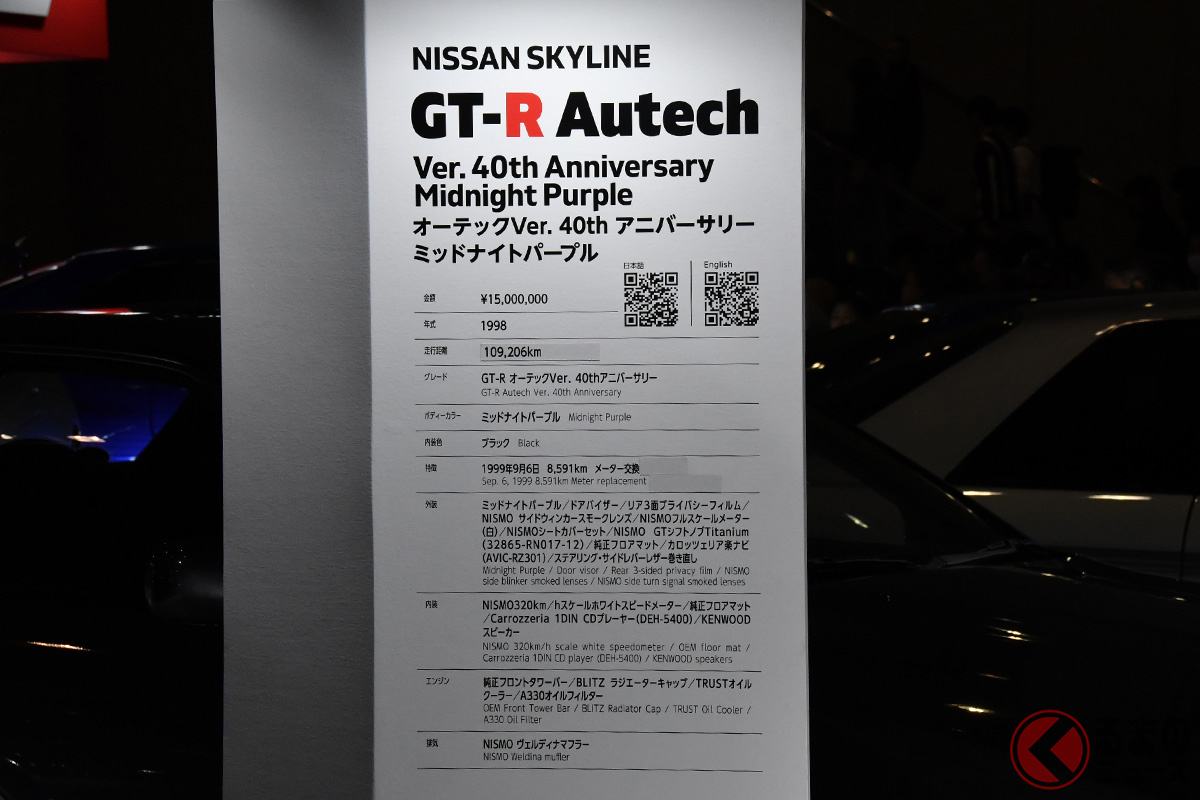 1億2000万円や440kmの「スカイラインGT-R」実車展示! 希少な「ミッドナイトパープル」も!? 過去には「5億の400R」で話題となった専門店がスゴかった
