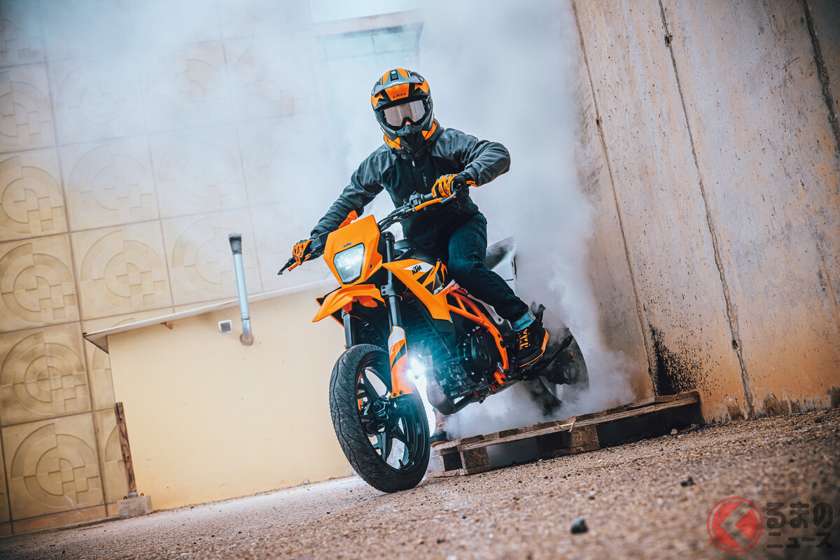 KTMの新戦略モデル!? 「原付二種」でも超本格! ライトウエイトדフルサイズ”モタード発表! めちゃ豪華な“装備”を採用したKTM「125 SMC R」オーストリアで登場!