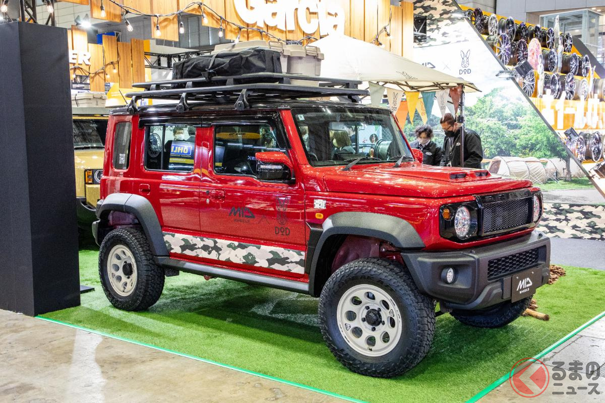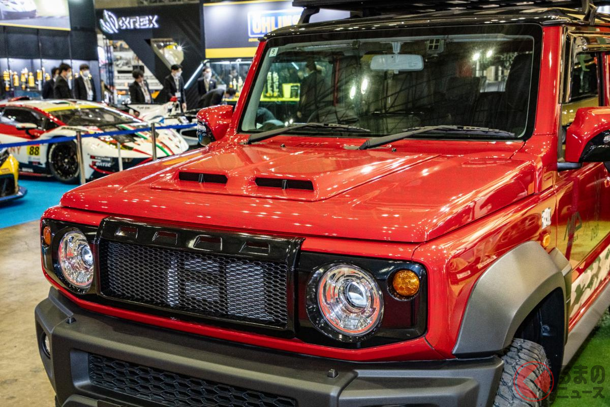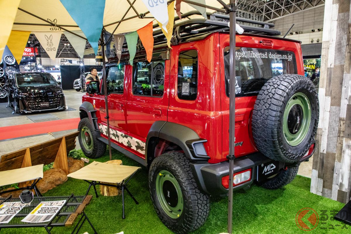 斬新なスズキ「ジムニー5ドア」実車展示! ド派手な改造仕様が現る!? 日本未発売の本格SUV、どんな特徴?
