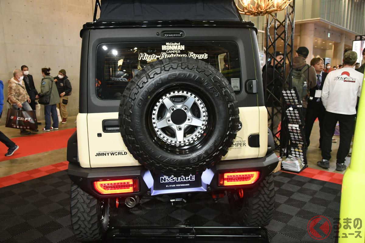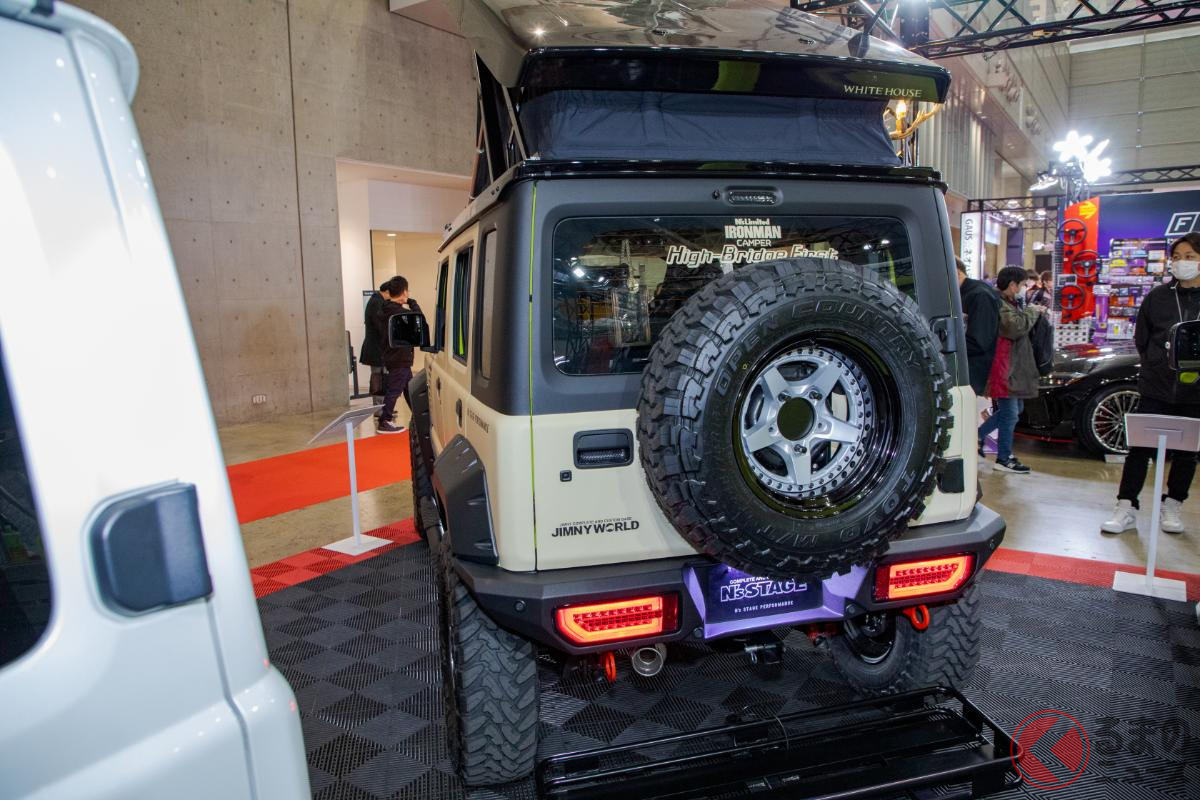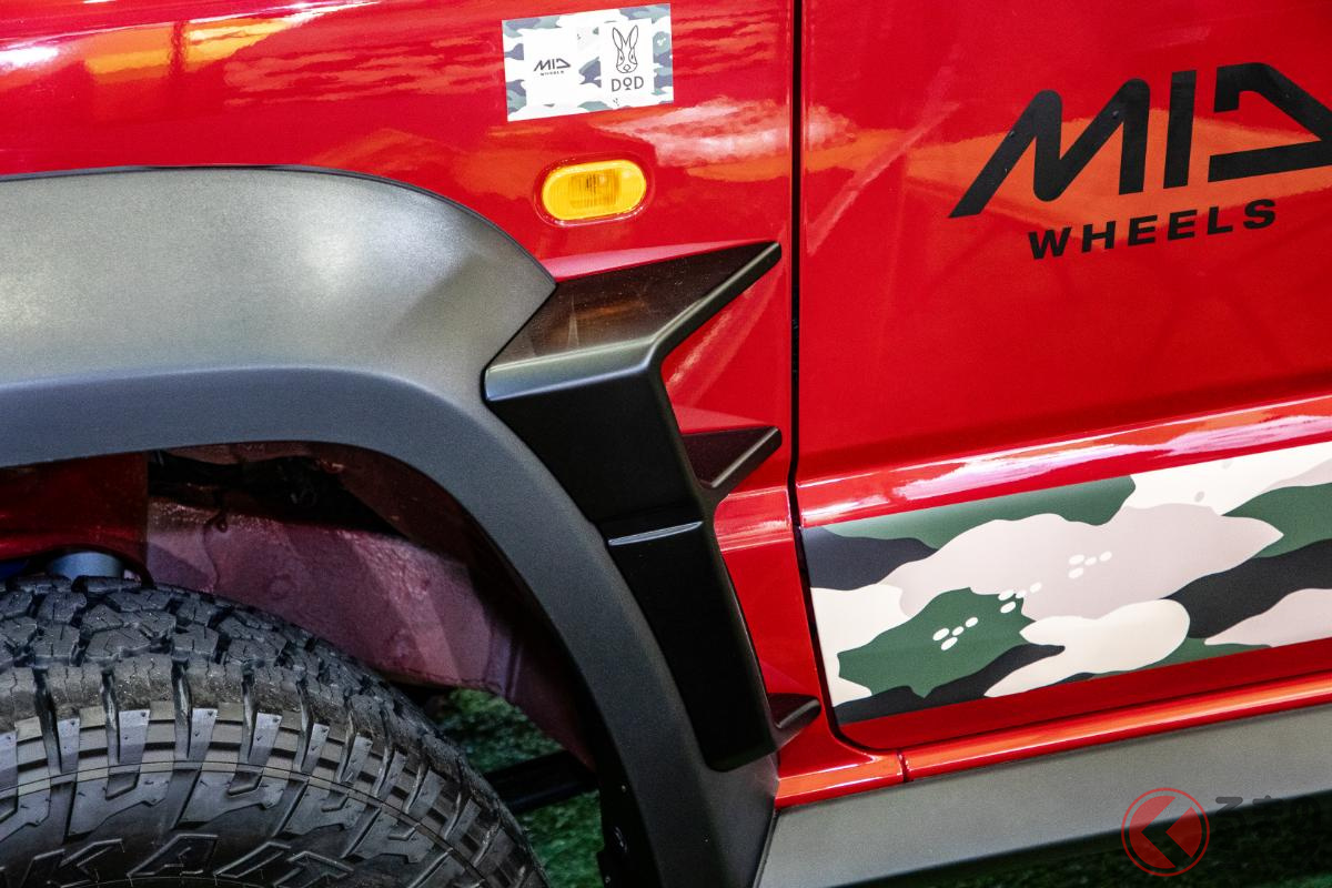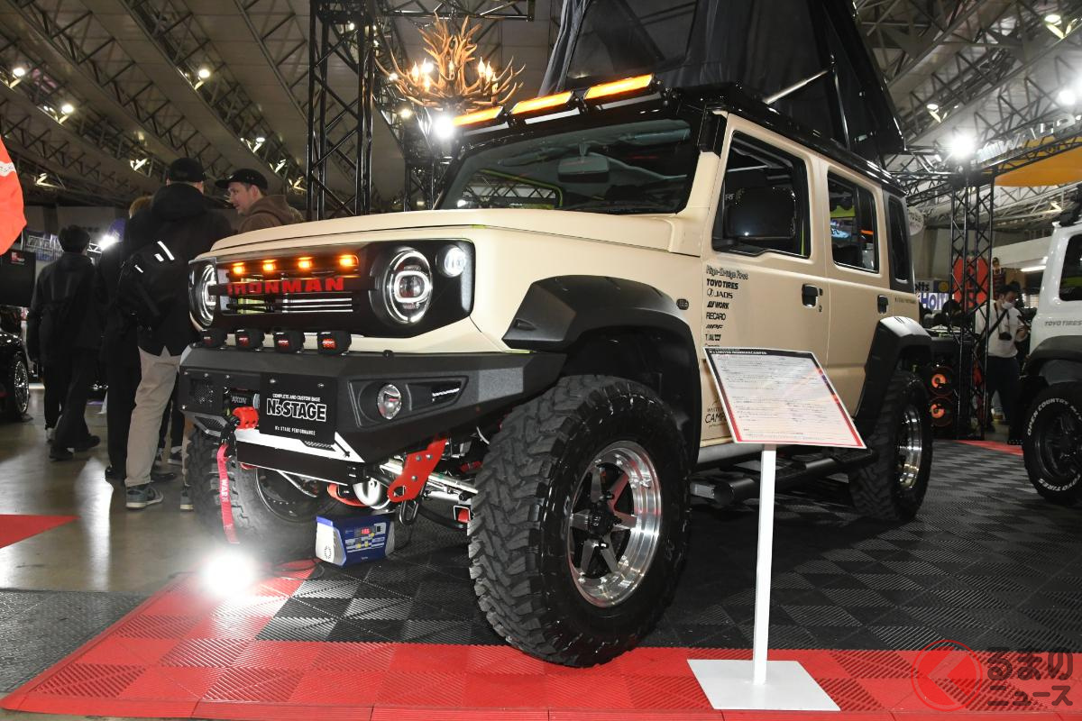 斬新なスズキ「ジムニー5ドア」実車展示! ド派手な改造仕様が現る!? 日本未発売の本格SUV、どんな特徴?
