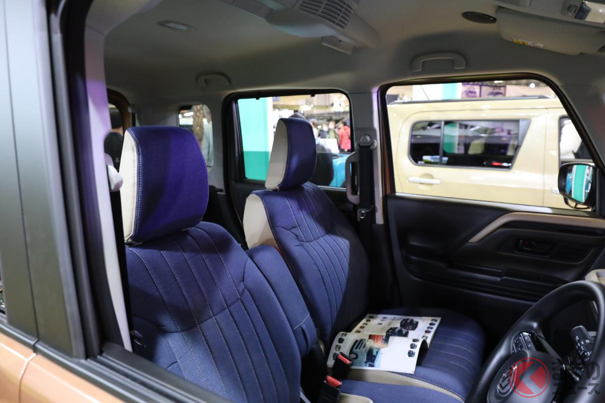 約229万円! 超タフ顔の三菱「5ドア”軽“SUV」初公開! 青内装も超カッコイイ“デリカミニ”の「KUHL STYLE KIT」仕様登場