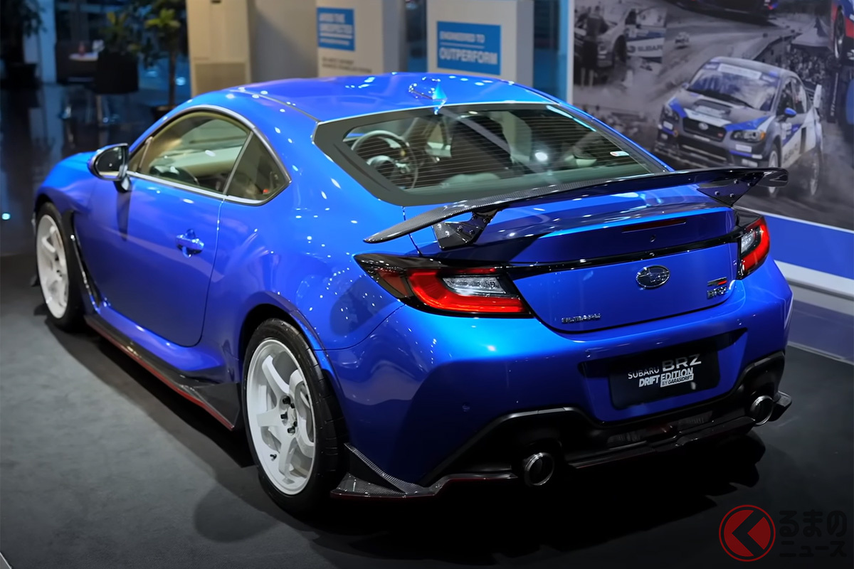 約1050万円! スバル新「4人乗り“スポーツカー”」がスゴイ! 迫力“リアウィング”採用が「カッコイイ」の声も! 精悍エアロで武装した尼国の「BRZドリフトエディション」が話題に