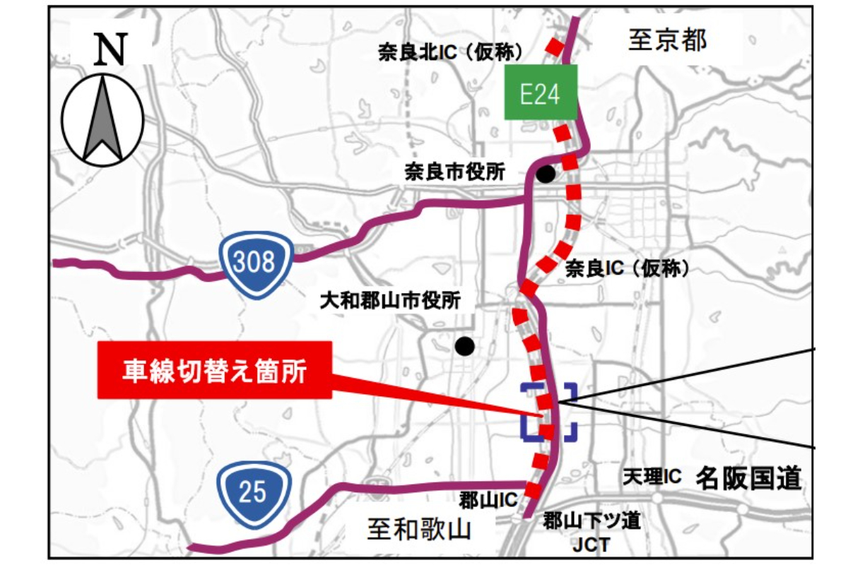 国土交通省 奈良国道事務所は2025年1月20日、県内で進められている京奈和自動車道「大和北道路」の工事進展にともない、現道の国道24号で車線切り替えをおこなうと発表しました。