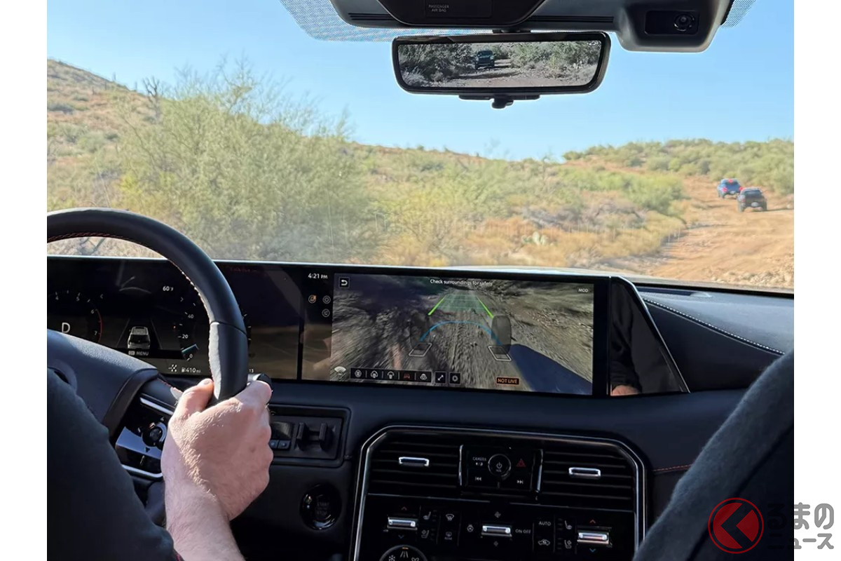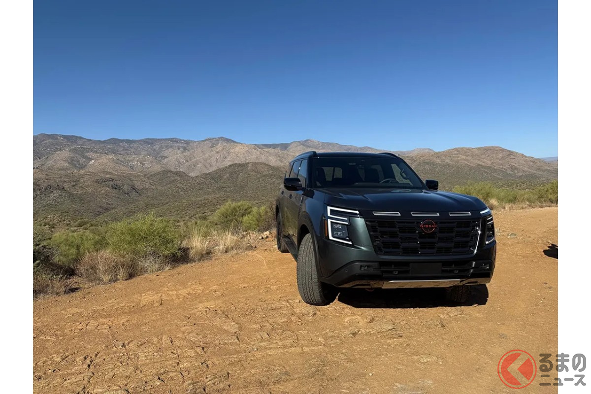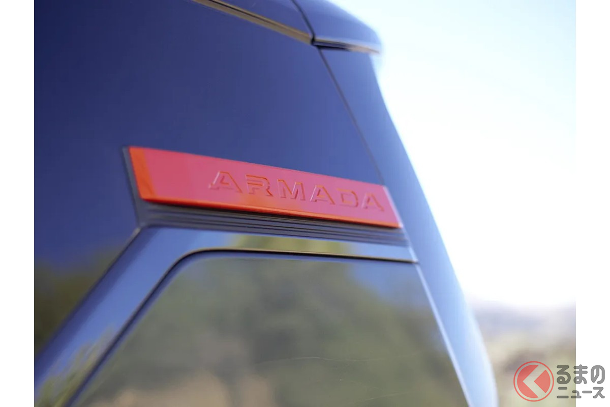 日産の新型「高級“8人乗り”SUV」が凄い! 「V6ツインターボ」×高性能4WDで川まで渡れる!? 斬新「コの字ライト」がカッコイイ「新型アルマーダ」米法人がテスト動画を公開