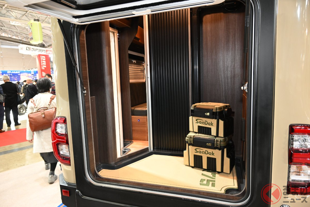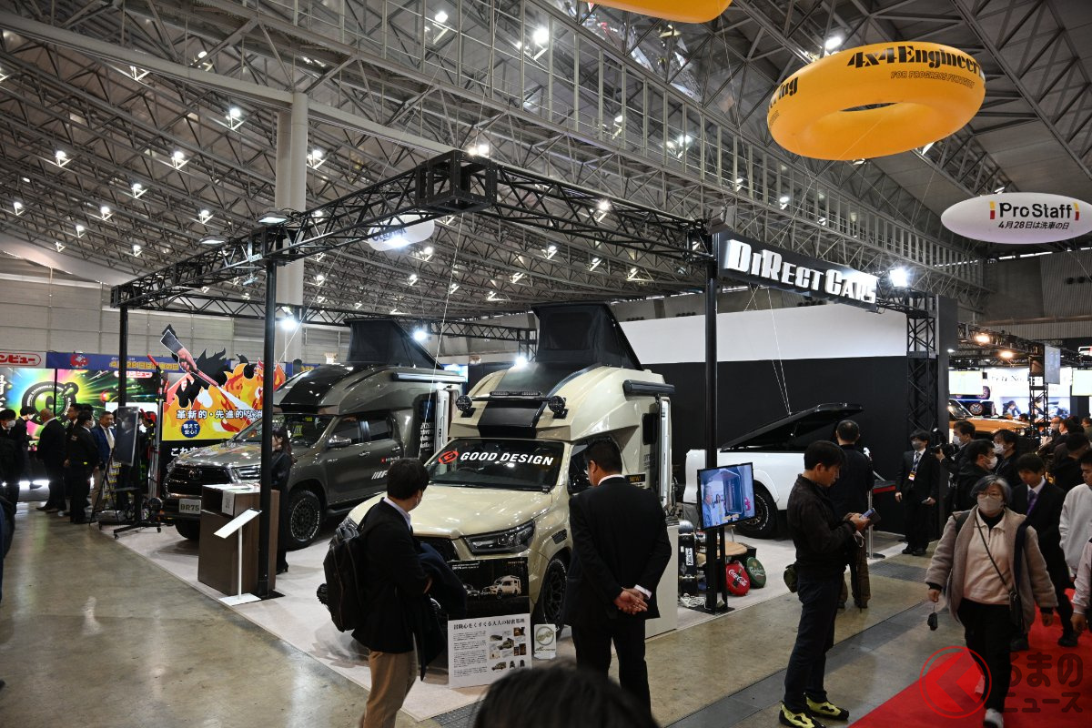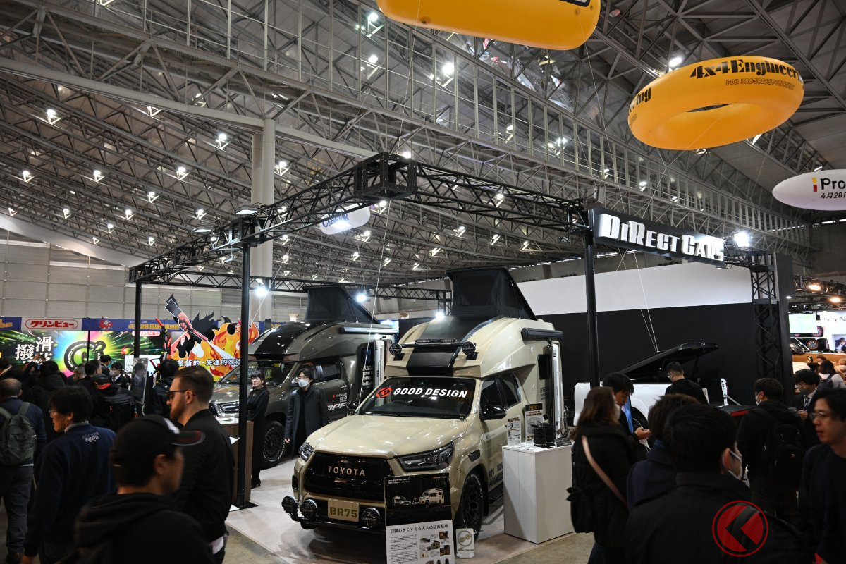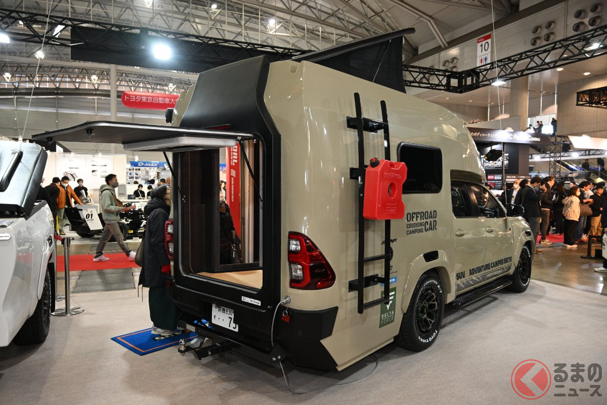 鮮烈な「ハイラックス“タフ車中泊仕様”」登場!? 立って歩ける専用設計の“めちゃ広い居住空間”がスゴい! シャワーも完備のダイレクトカーズ「BR75」TASで実車公開