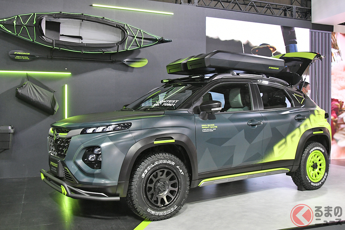 超タフ仕様のスズキ「全長4m級SUV」初公開! ゴツゴツボディ×暗闇カラーの「夜釣り」仕様!? 超ワイルドな「フロンクス シーバス ナイトゲーム」TASに登場