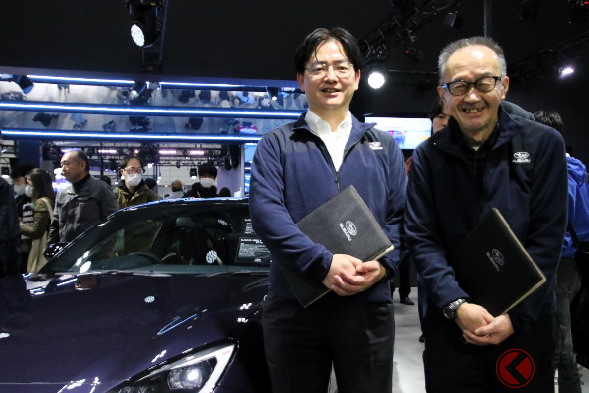 スバル新「4人乗り“スポーツカー”」初公開! オシャ“紫”が超“大人っぽい”! 高級感たっぷりの“チャレンジング仕様”な「BRZ」とは