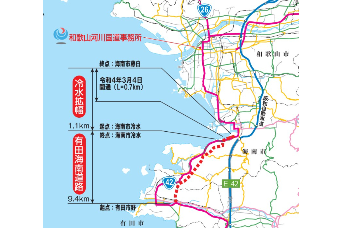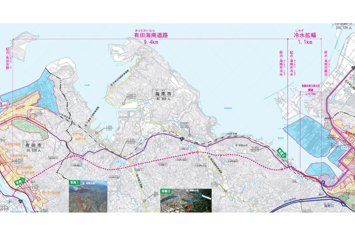 和歌山市郊外へむすぶ新たなバイパス道路「有田海南道路」の工事が進行中です。完成すればどう便利になるのでしょうか。また工事はどこまで進んでいるのでしょうか。