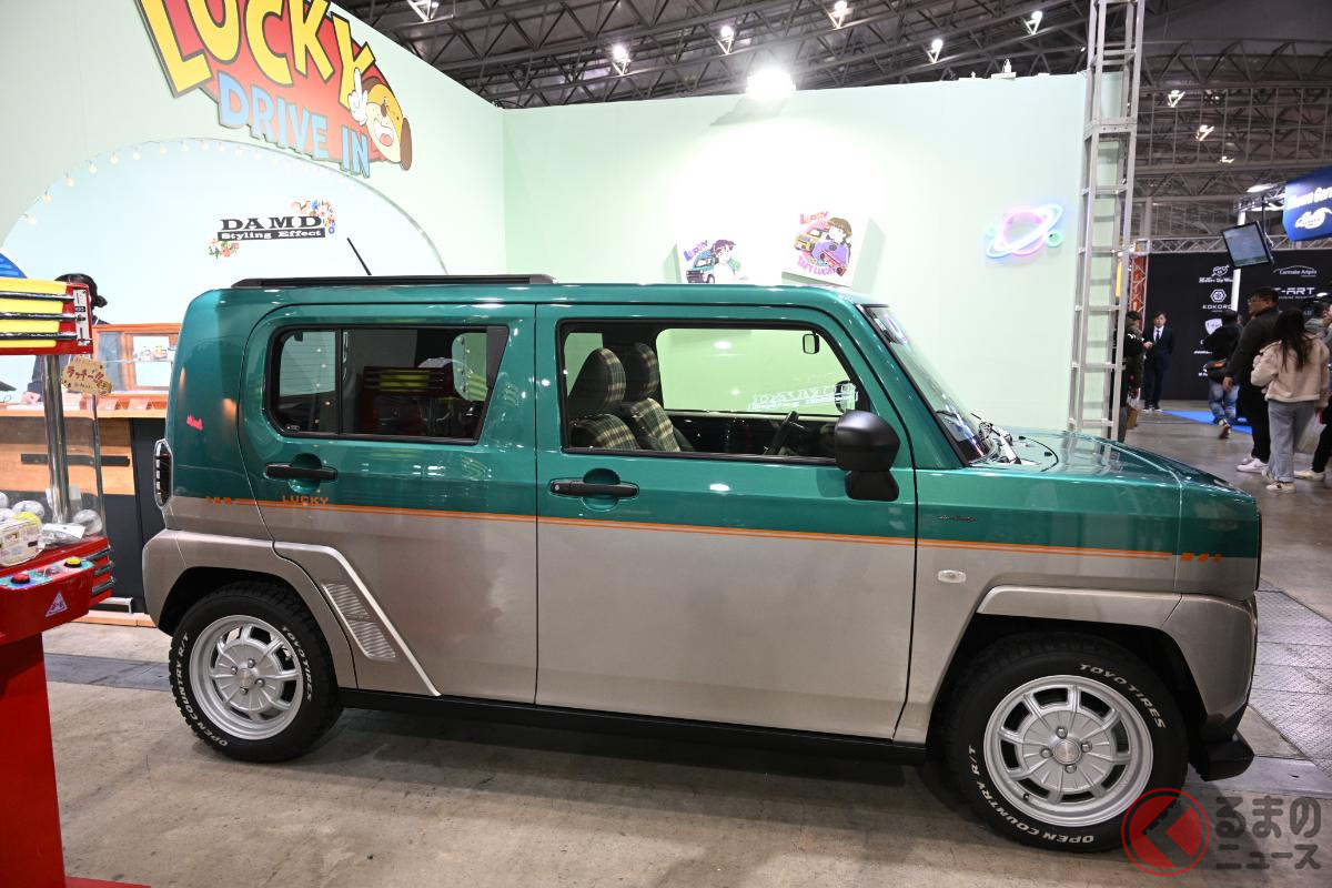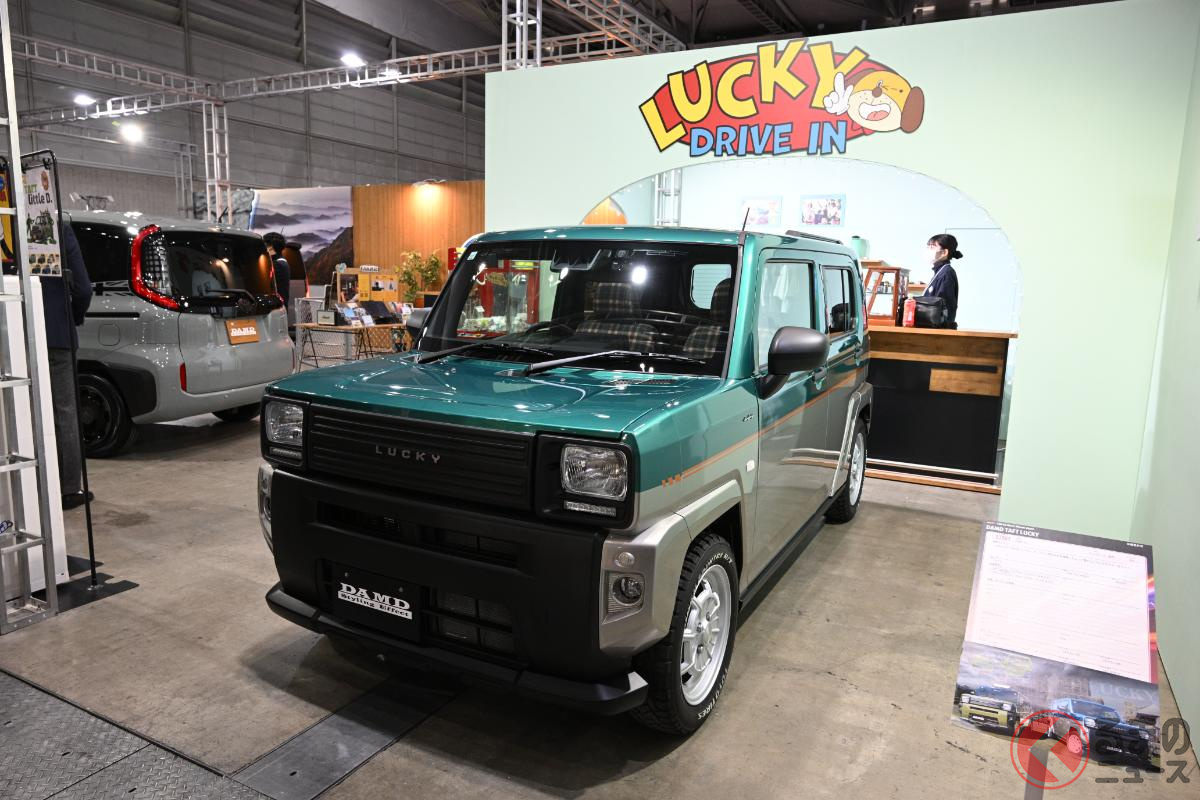 レトロ顔のダイハツ「タフト」公開!? “軽”ロッキーな旧車デザインが超カッコイイ! 約20万円で顔面刷新な「DAMD TAFT LUCKY」とは