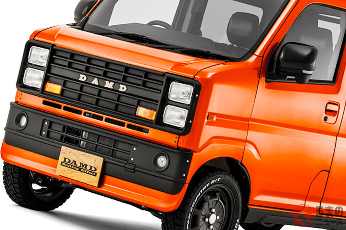 角目4灯の「“4人乗り”軽トラ」あった! “ダイハツ商用車”に斬新すぎる「レトロ顔」採用! DAMD「アトレー・ファズ・デッキバン」が凄い!