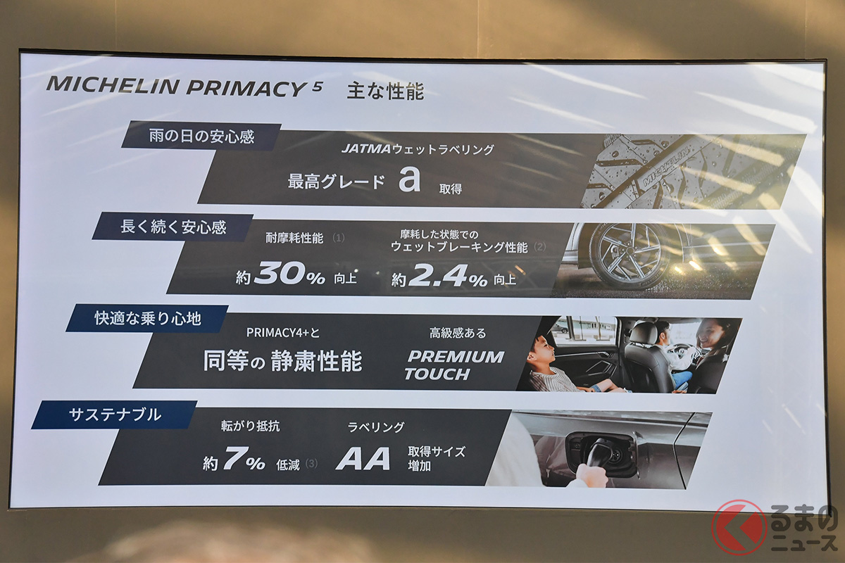 ミシュランは2025年1月31日、プレミアムコンフォートタイヤの新製品「MICHELIN PRIMACY 5(ミシュラン プライマシー ファイブ)」を同年3月1日より順次発売すると発表しました。サイズは16インチから20インチまでの全42サイズで、価格はオープンです。
