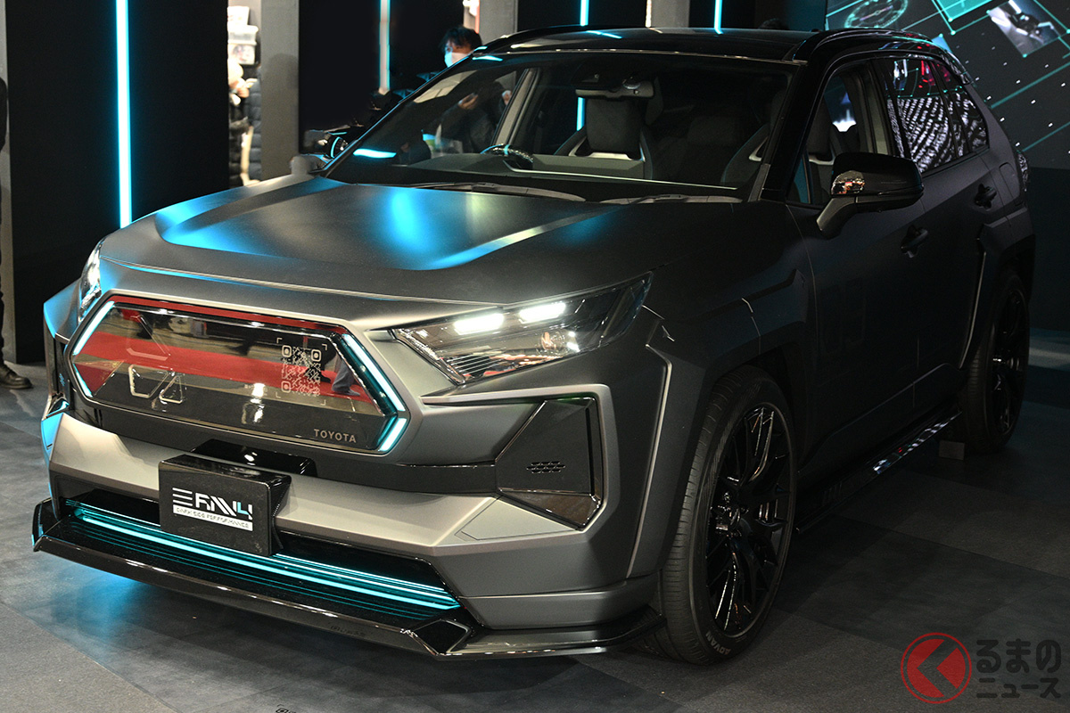 豊田自動織機は、「東京オートサロン2025」にて、トヨタ「RAV4プラグインハイブリッド」のカスタムカー「RAV4 DARKSIDE PERFORMANCE」を発表しました。RAV4の新たな一面としてミステリアスな雰囲気をまとった姿は、多くの来場者から注目を集めました。