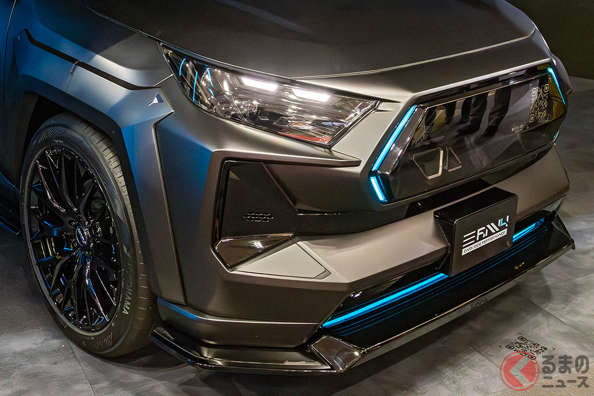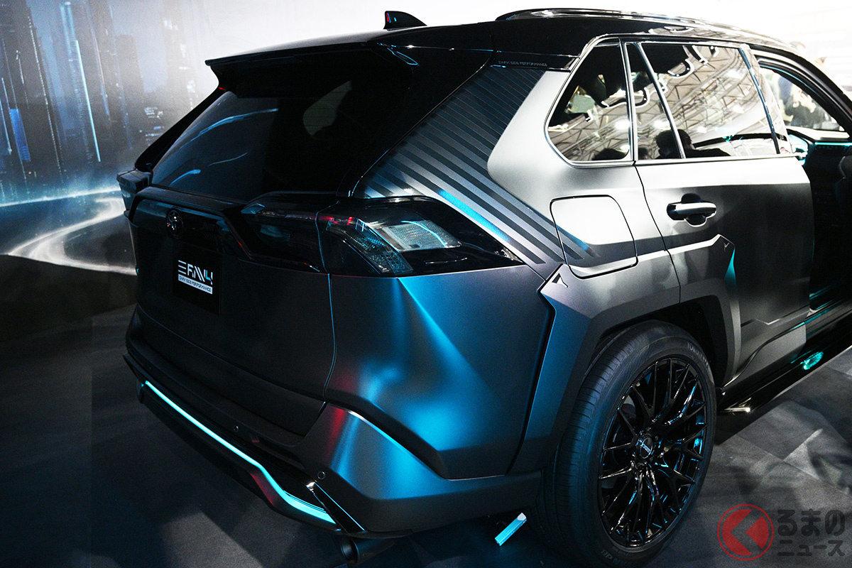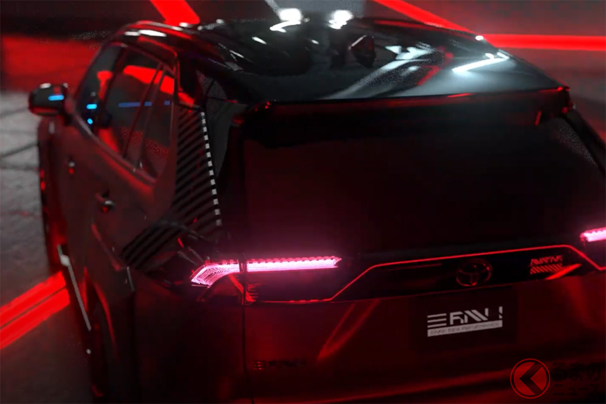 トヨタSF風「クロスオーバーSUV」登場! 斬新な「発光バンパー」&「メタルボディ」が超カッコイイ! ミステリアスな「RAV4ダークサイドパフォーマンス」に注目!
