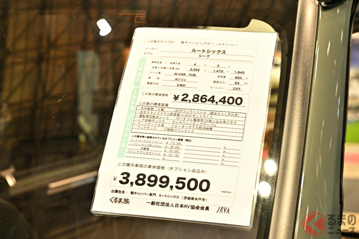 キャンピングカーイベント「ジャパンキャンピングカーショー(JCCS)2025」でルートシックスは、軽商用バン「N-VAN」のキャンピングカー仕様を出展しました。どのようなクルマなのでしょうか。