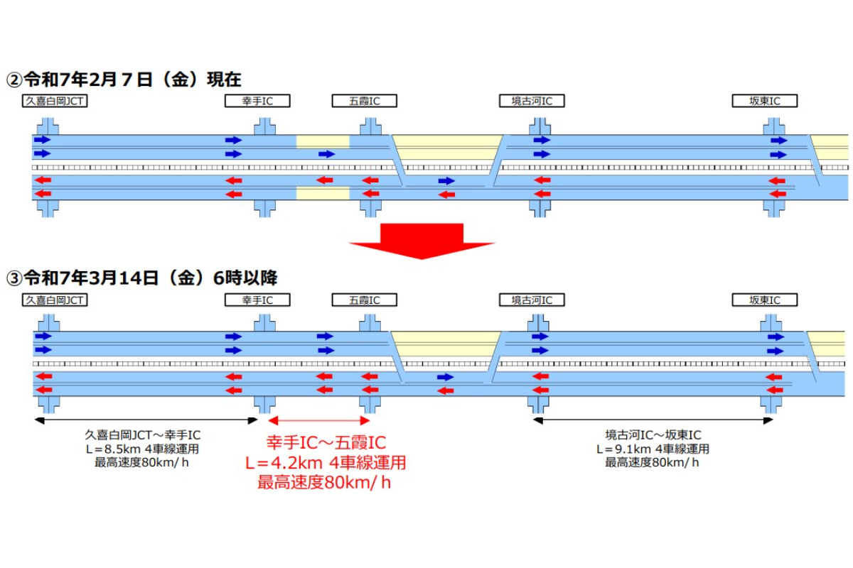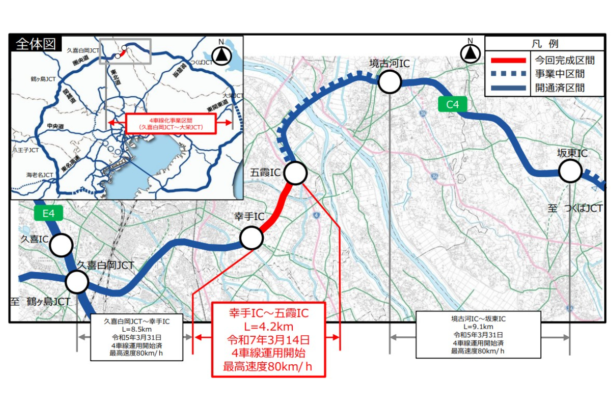 NEXCO東日本は2025年2月7日、圏央道の幸手IC~五霞ICについて、3月14日 朝6時に4車線化が完了すると発表しました。