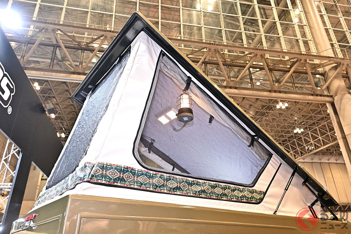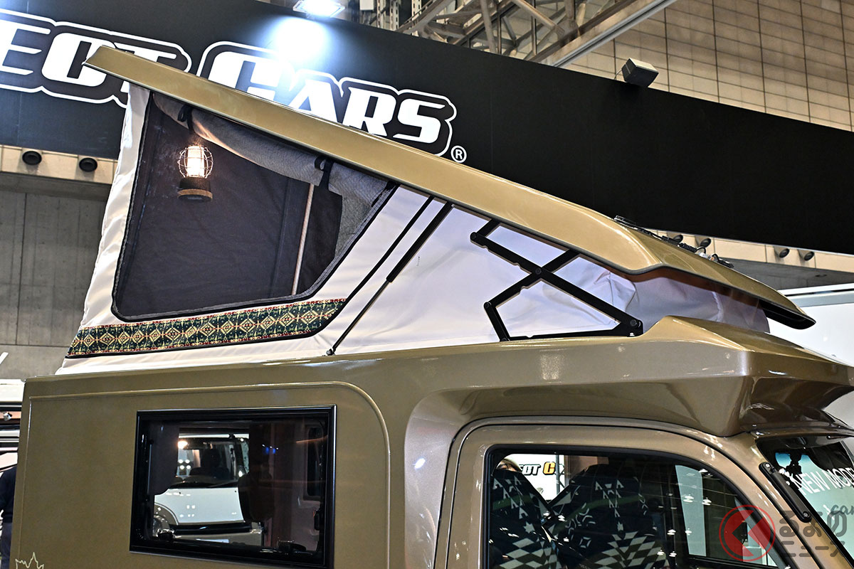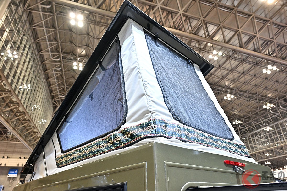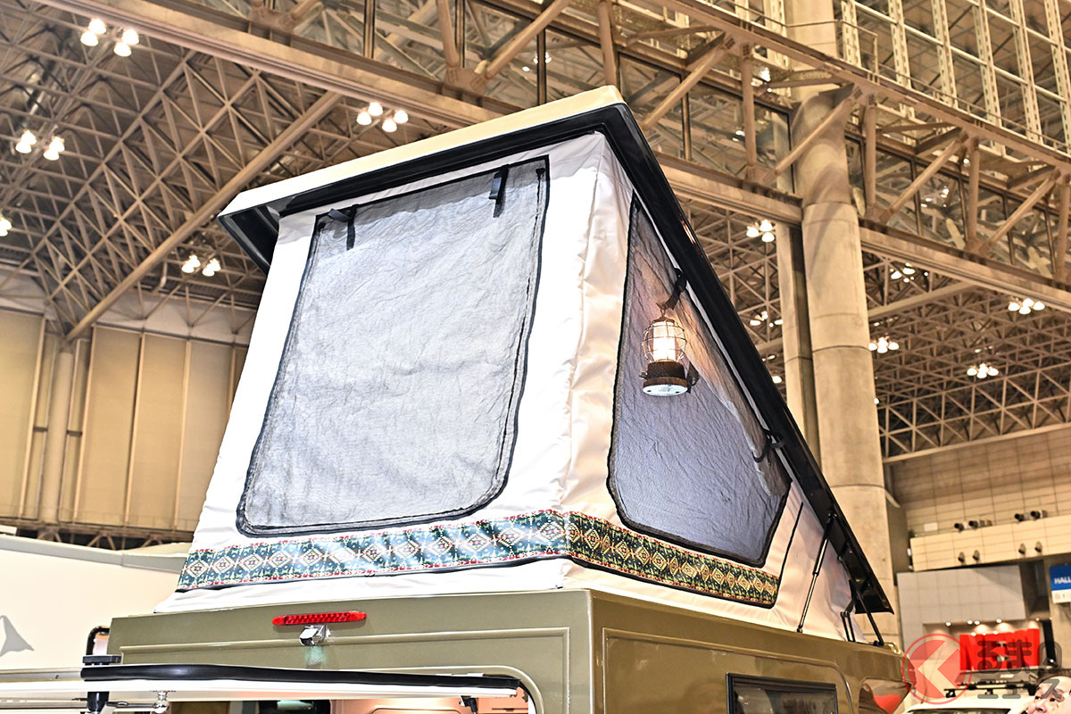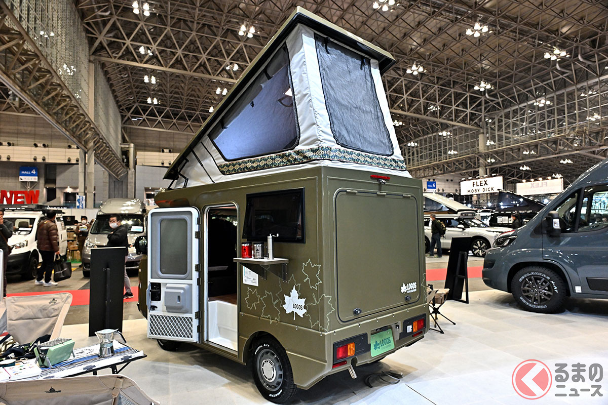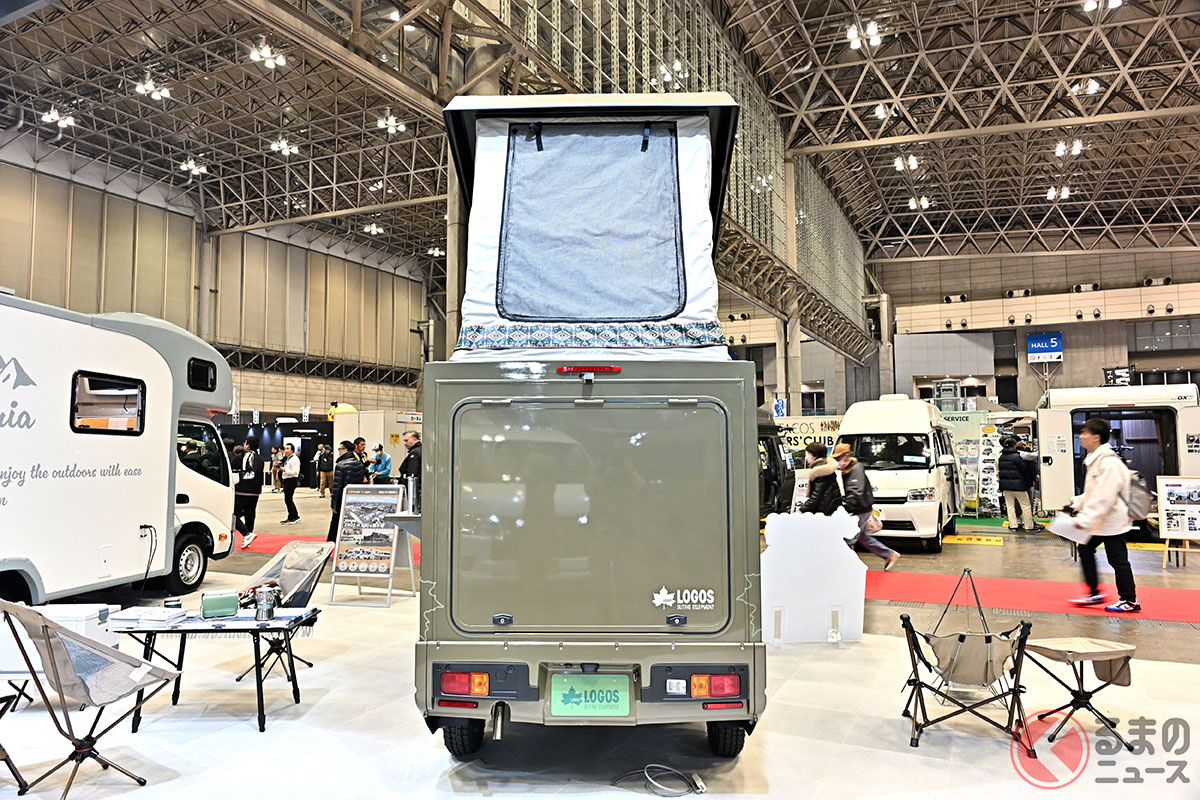 旧車デザインの新「4人乗り“軽トラ”」公開! 「“パカッ”とルーフ」で“車上泊”もできる! アウトドアブランドとコラボしたダイレクトカーズの軽キャンパー「アマホ ロゴス エディション」登場
