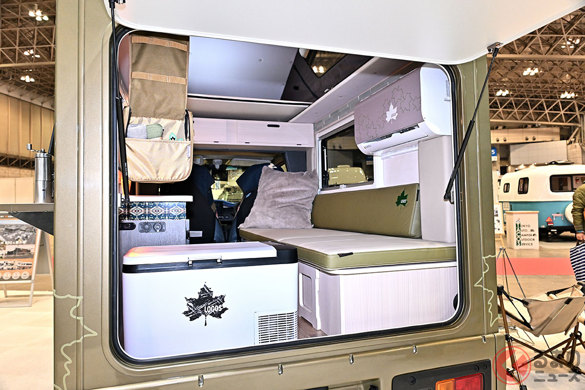 キャンピングカーイベント「ジャパンキャンピングカーショー(JCCS)2025」でダイレクトカーズは、人気アウトドアブランドとコラボを組んだ新型軽キャンピングカーを出展しました。どのようなクルマなのでしょうか。