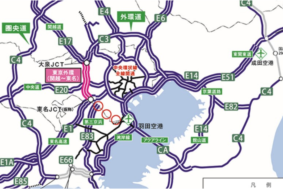 首都圏近郊をぐるりとつなぐ「外環道」ですが、まだ肝心の「関越道~中央道~東名」がつながっていません。この未開通区間は、一体いつになったら開通するのでしょうか。