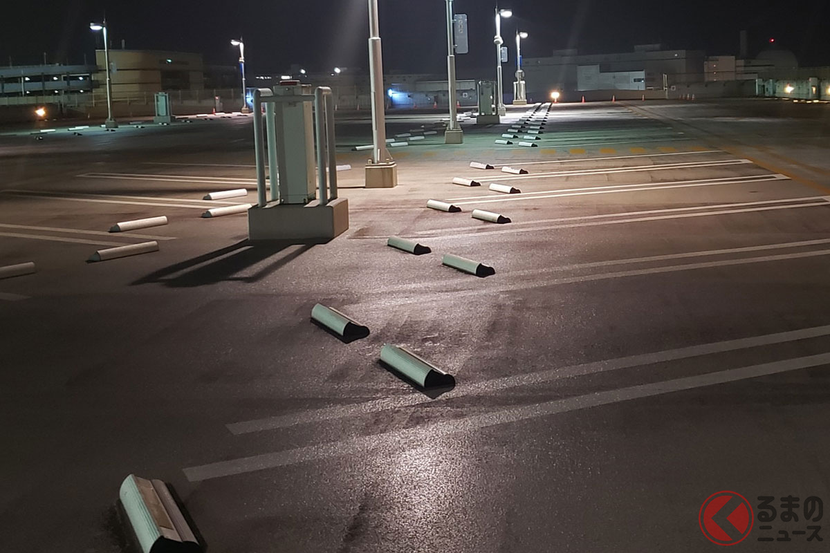 「ギャーッ!」つまずいた! 夜の歩行者事故を防ぐ「画期的な対策」登場!? 斬新すぎる「車止め」が注目! 開発の理由とは