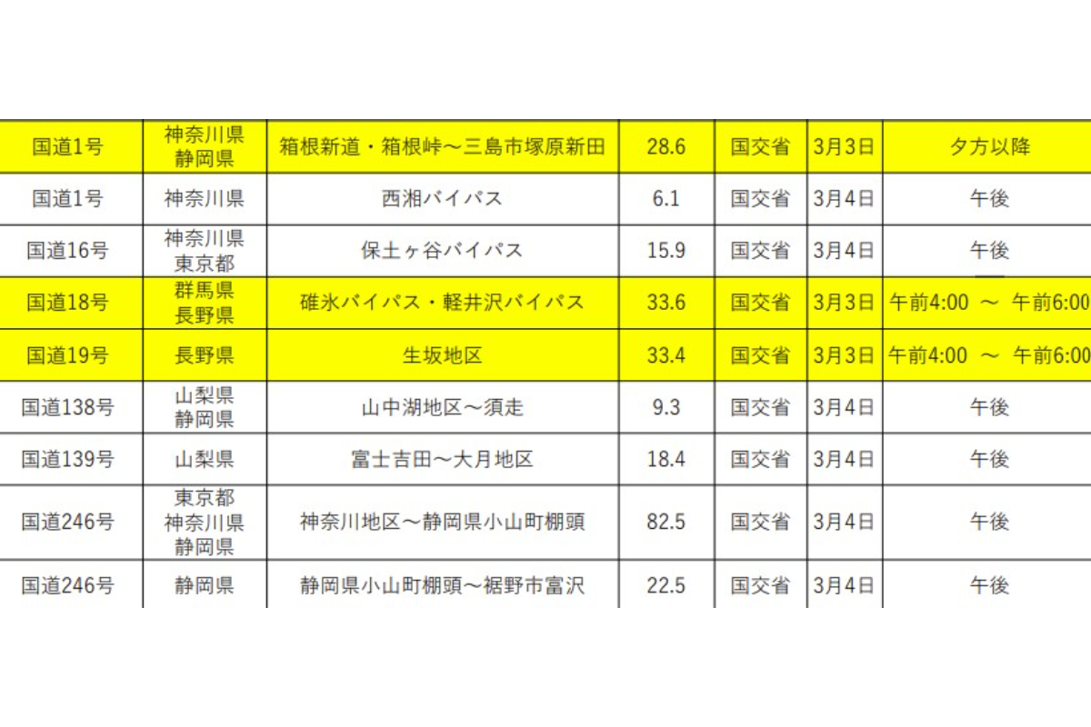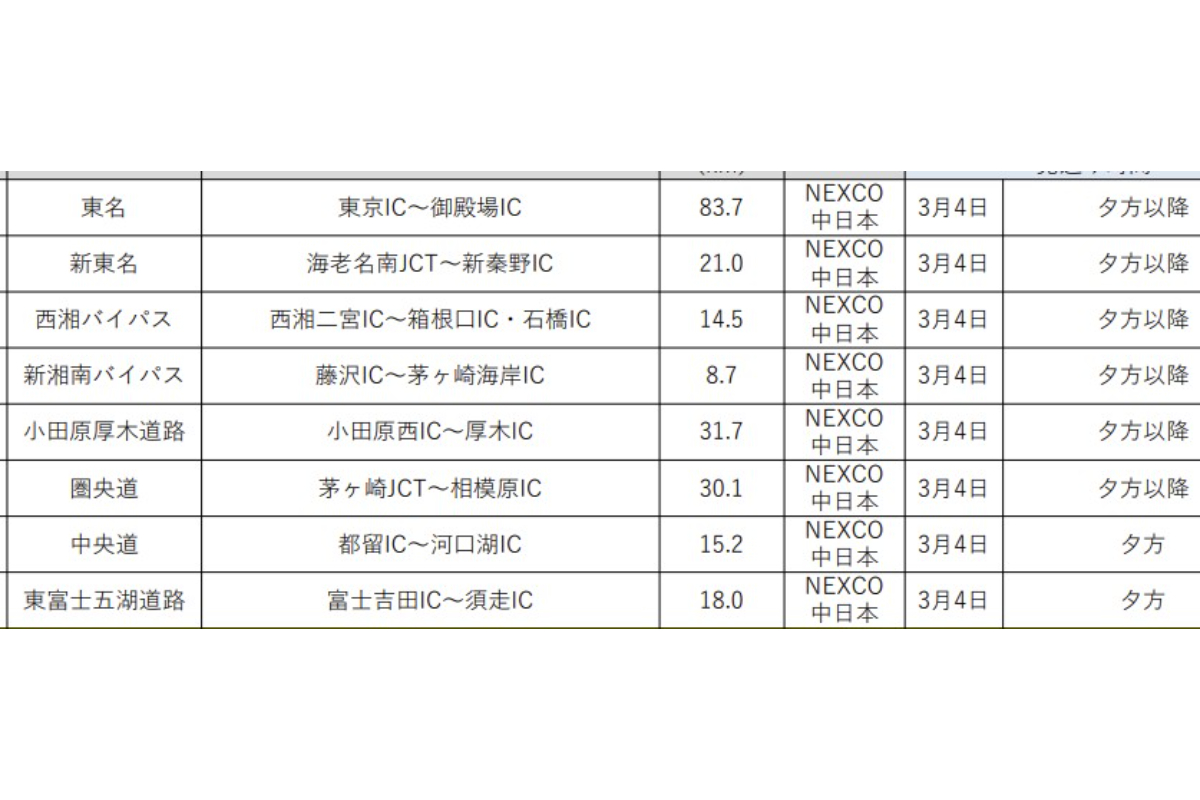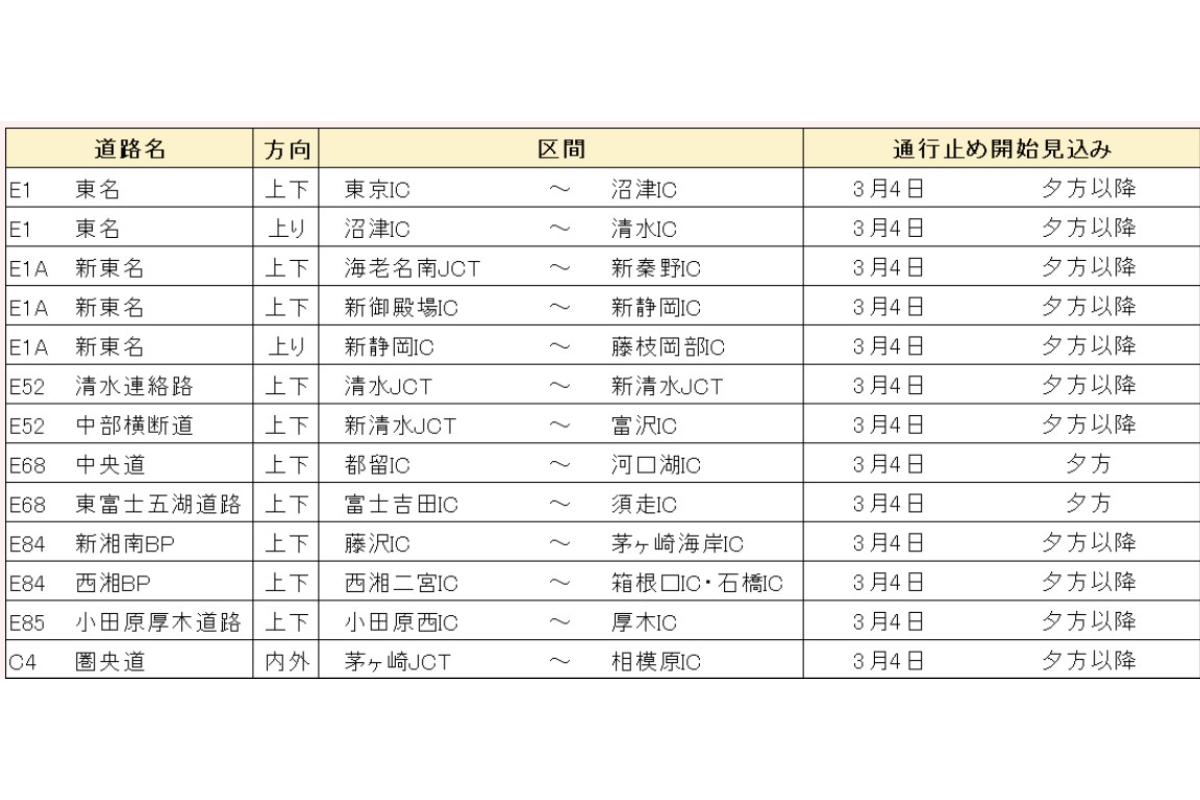 NEXCO中日本は、3月4日夕方から、管内の高速道路が広範囲で通行止めとなる可能性を発表しました。