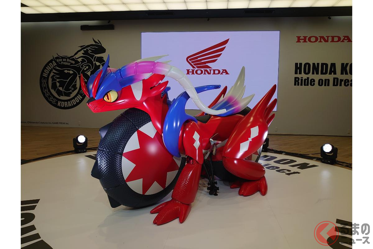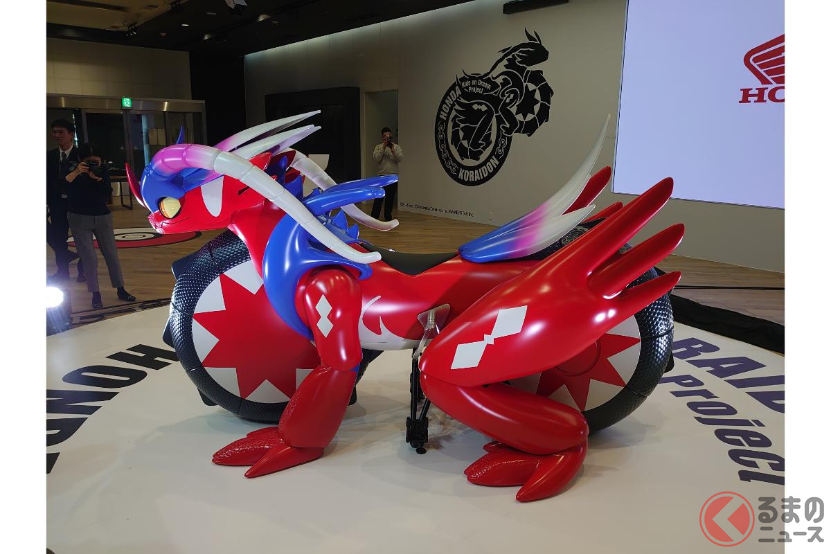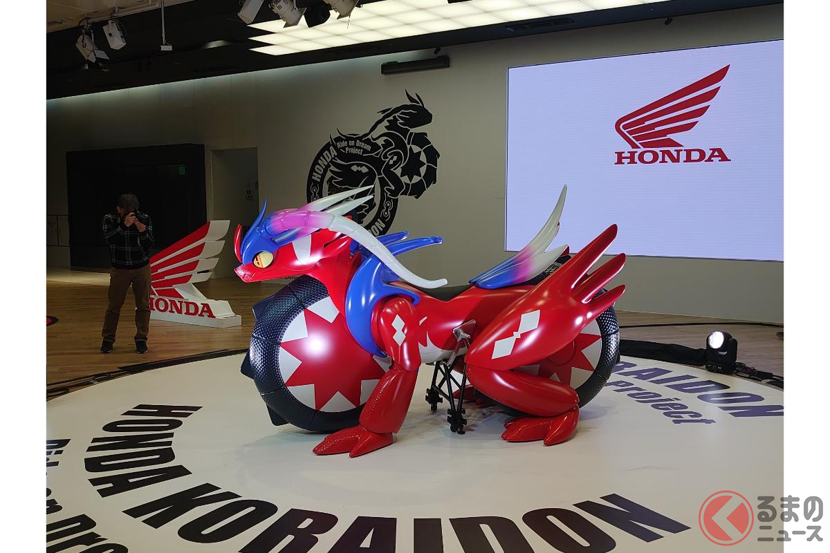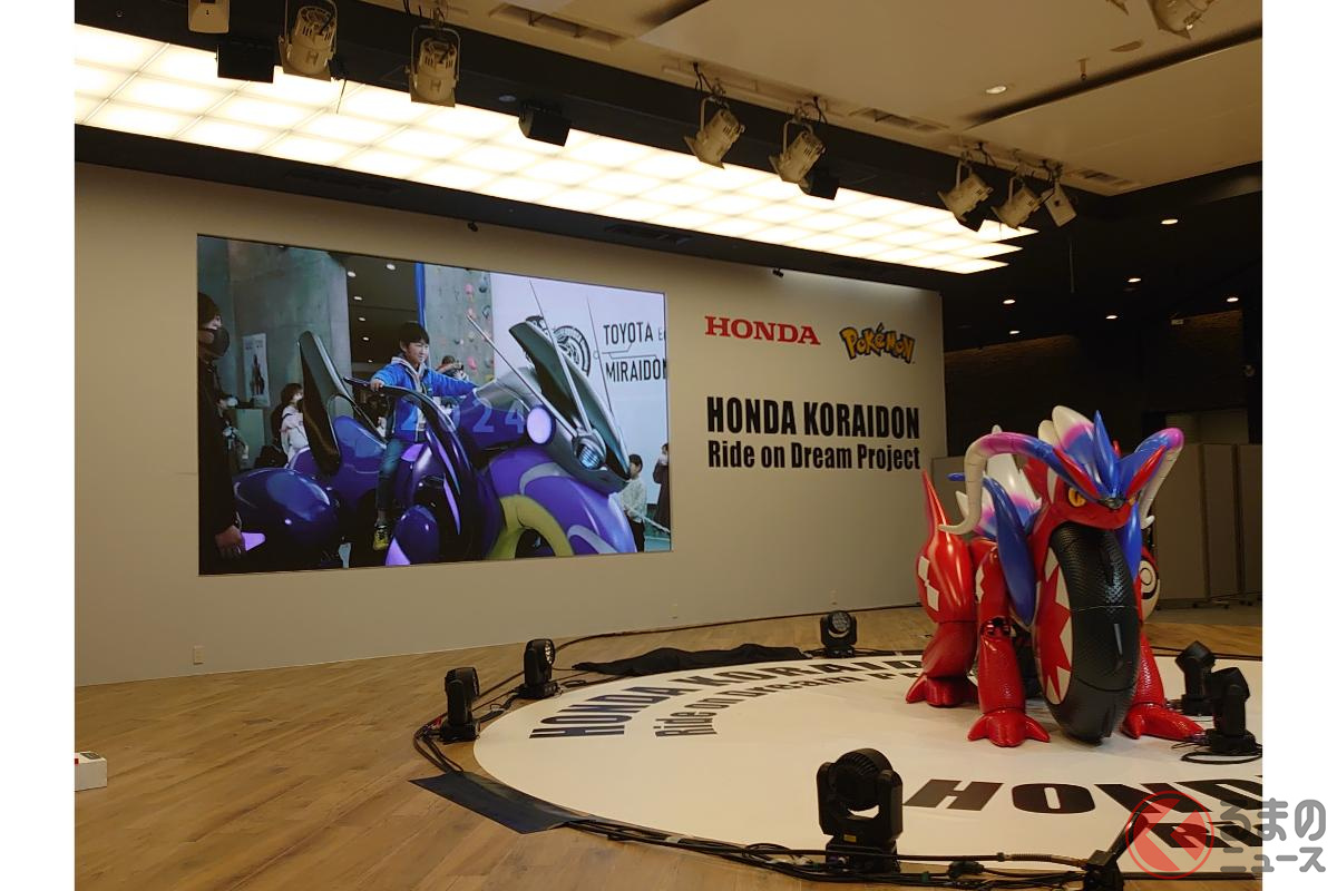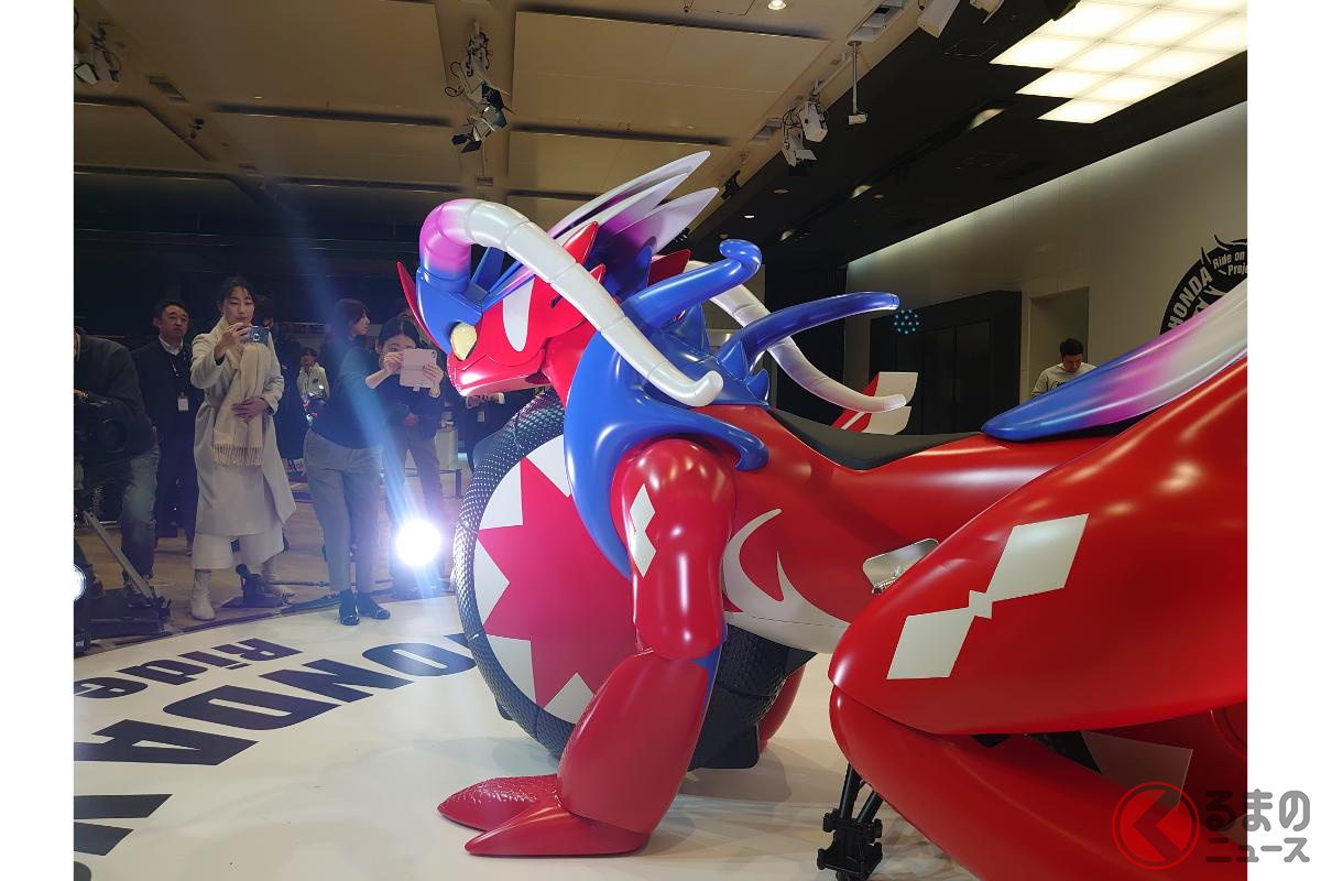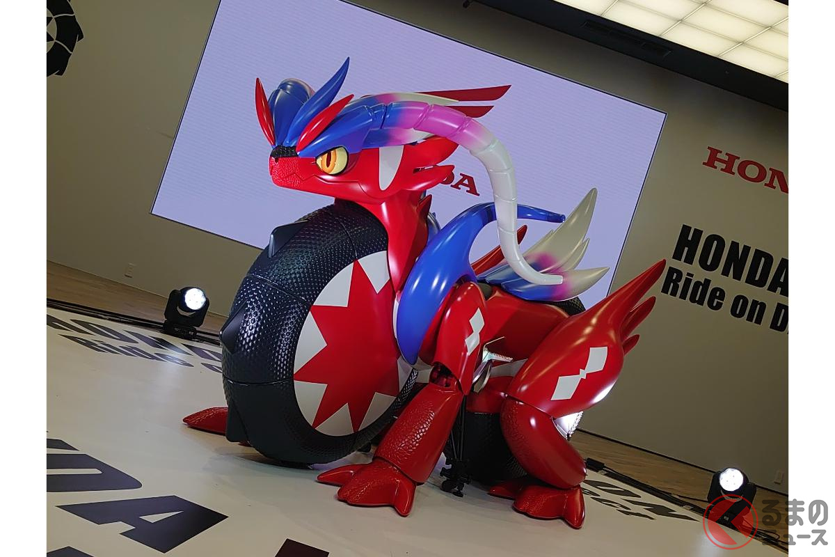 ホンダが斬新「モンスターバイク」発表! 独自の“倒れない機能”搭載した新「コライドン」がスゴイ! 伝説のポケモン再現した「実物大モデル」初公開!