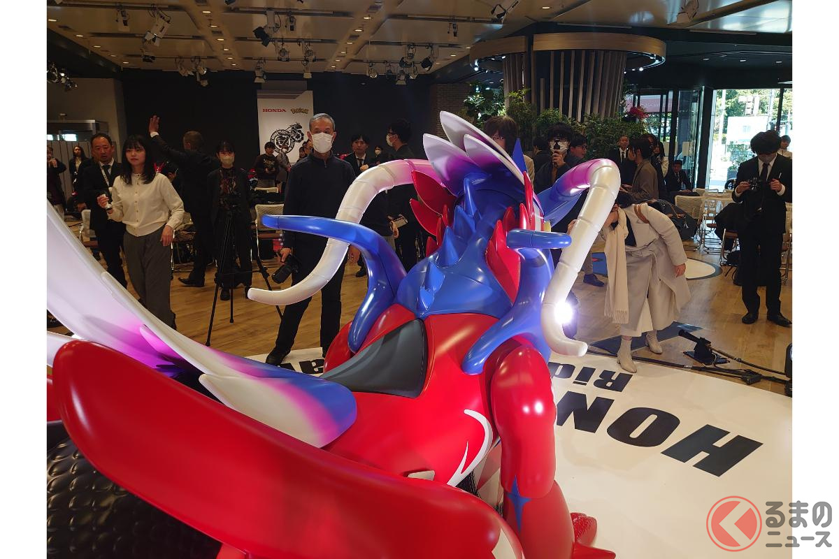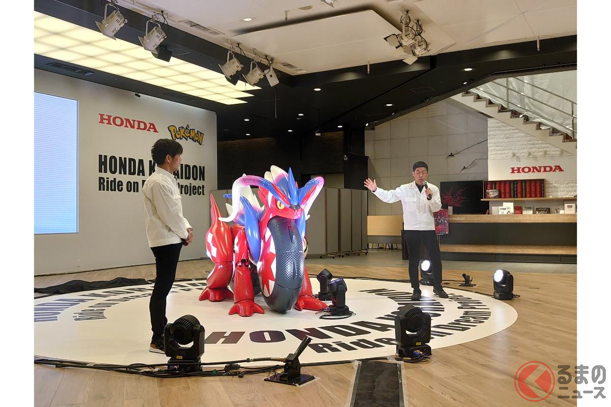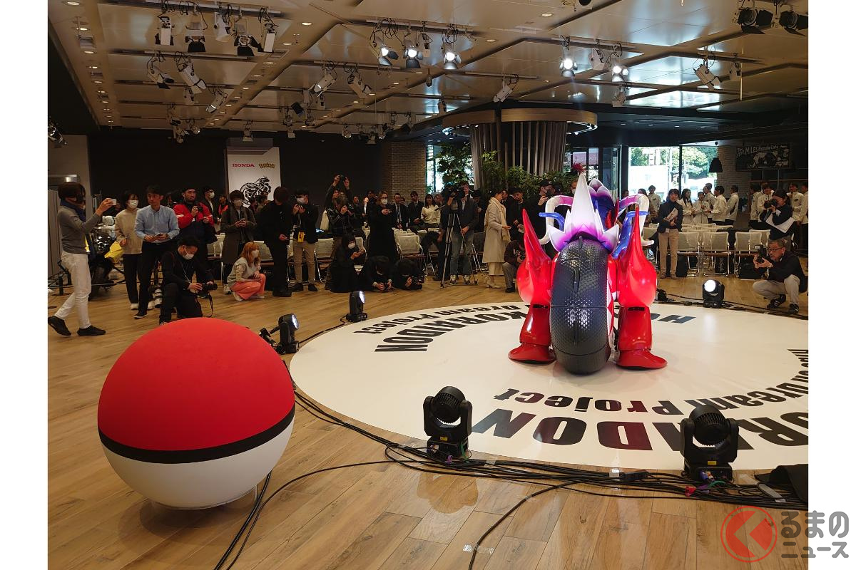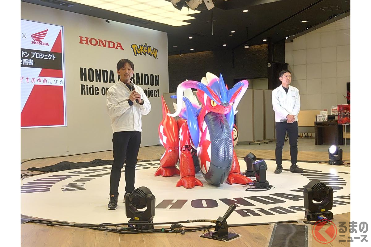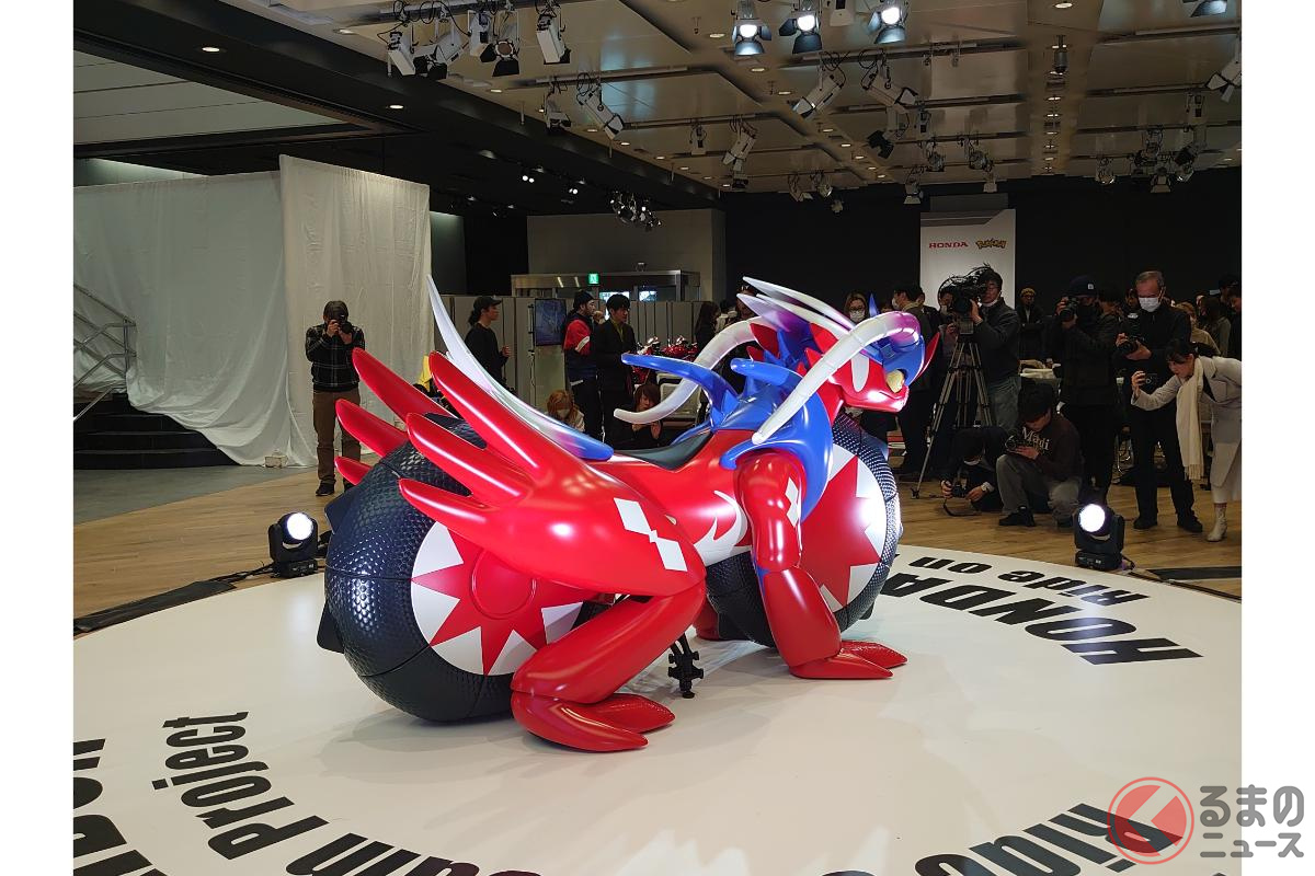 ホンダが斬新「モンスターバイク」発表! 独自の“倒れない機能”搭載した新「コライドン」がスゴイ! 伝説のポケモン再現した「実物大モデル」初公開!