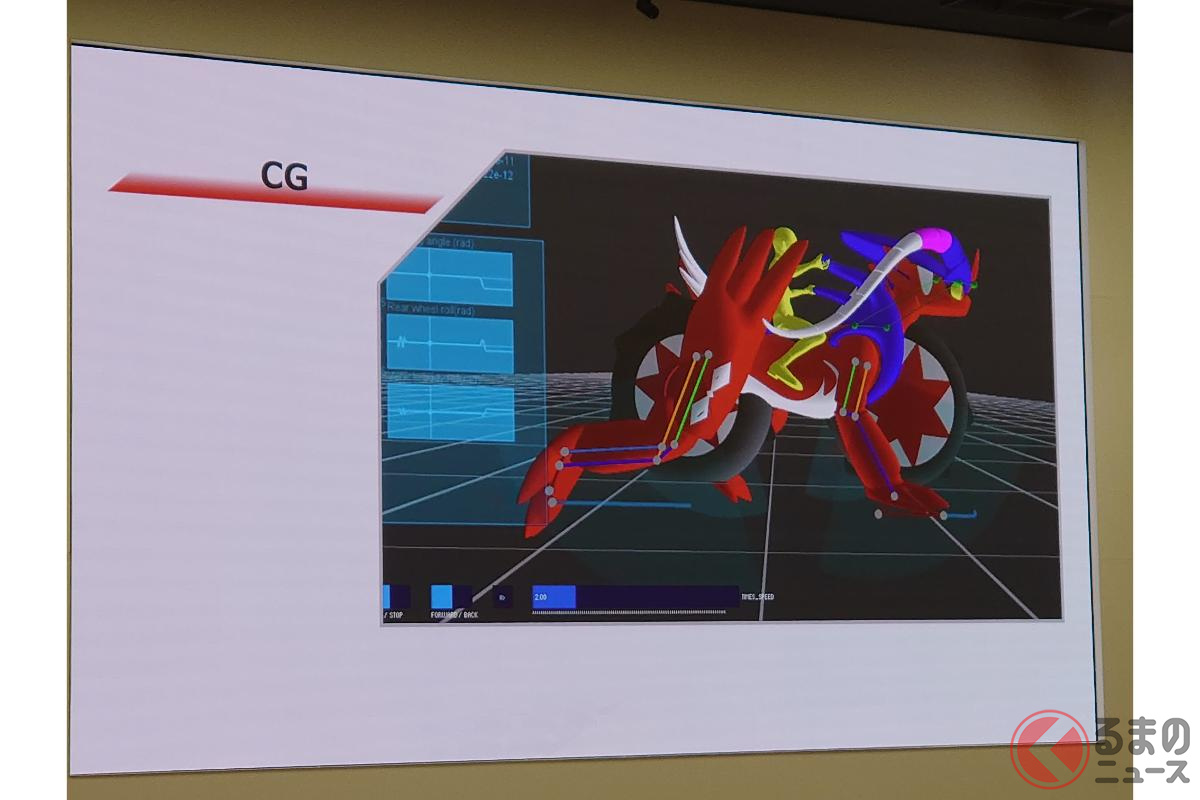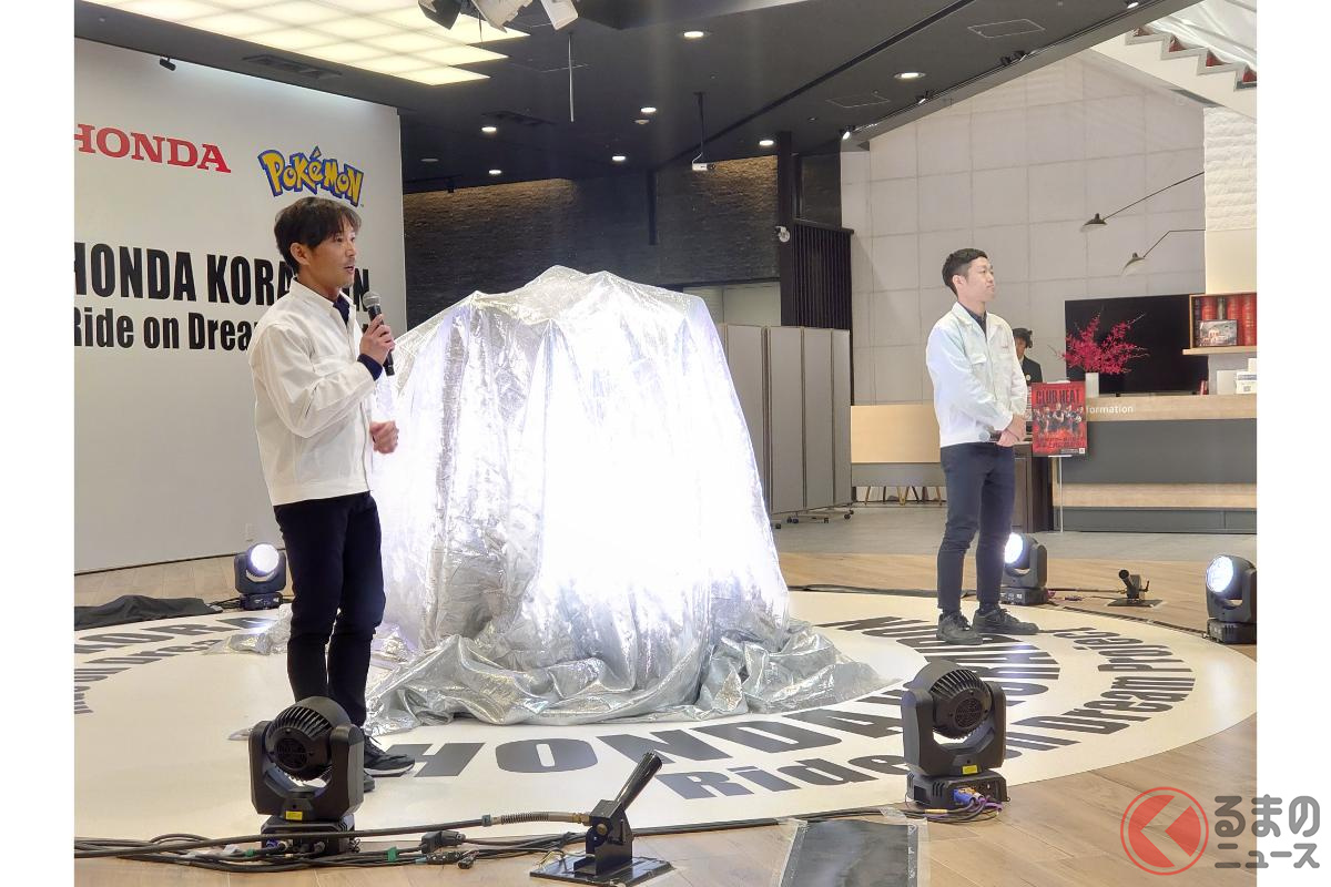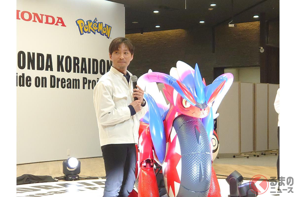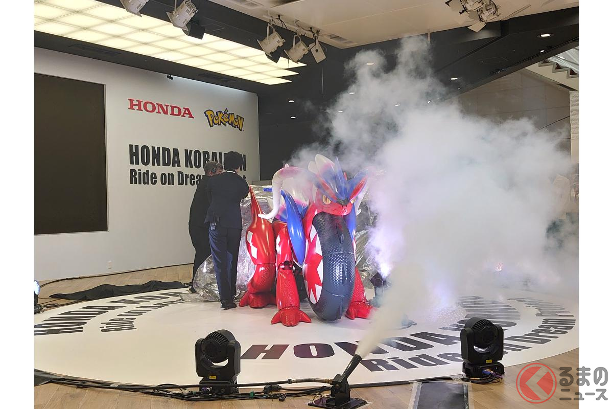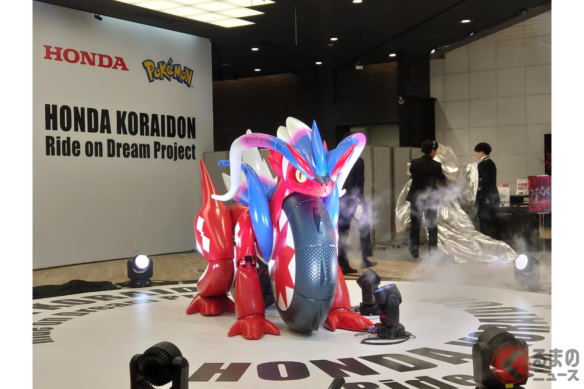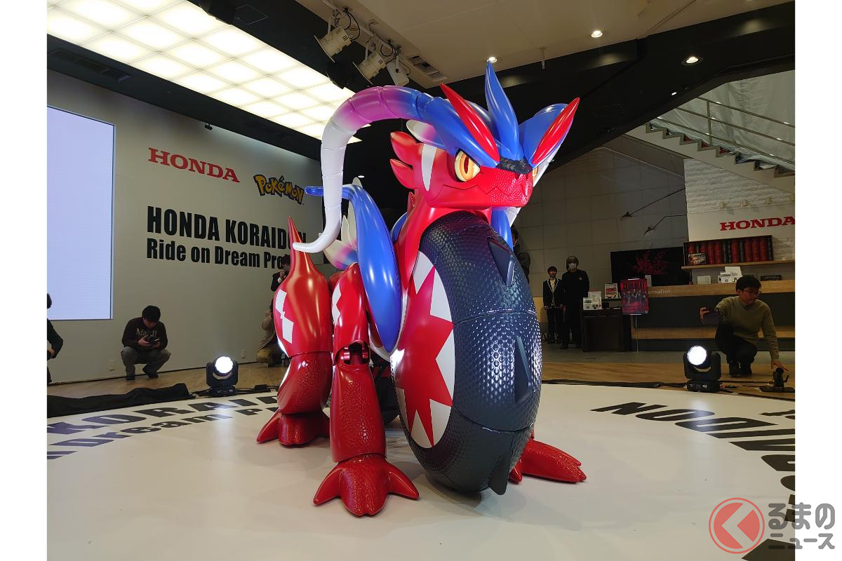 ホンダが斬新「モンスターバイク」発表! 独自の“倒れない機能”搭載した新「コライドン」がスゴイ! 伝説のポケモン再現した「実物大モデル」初公開!