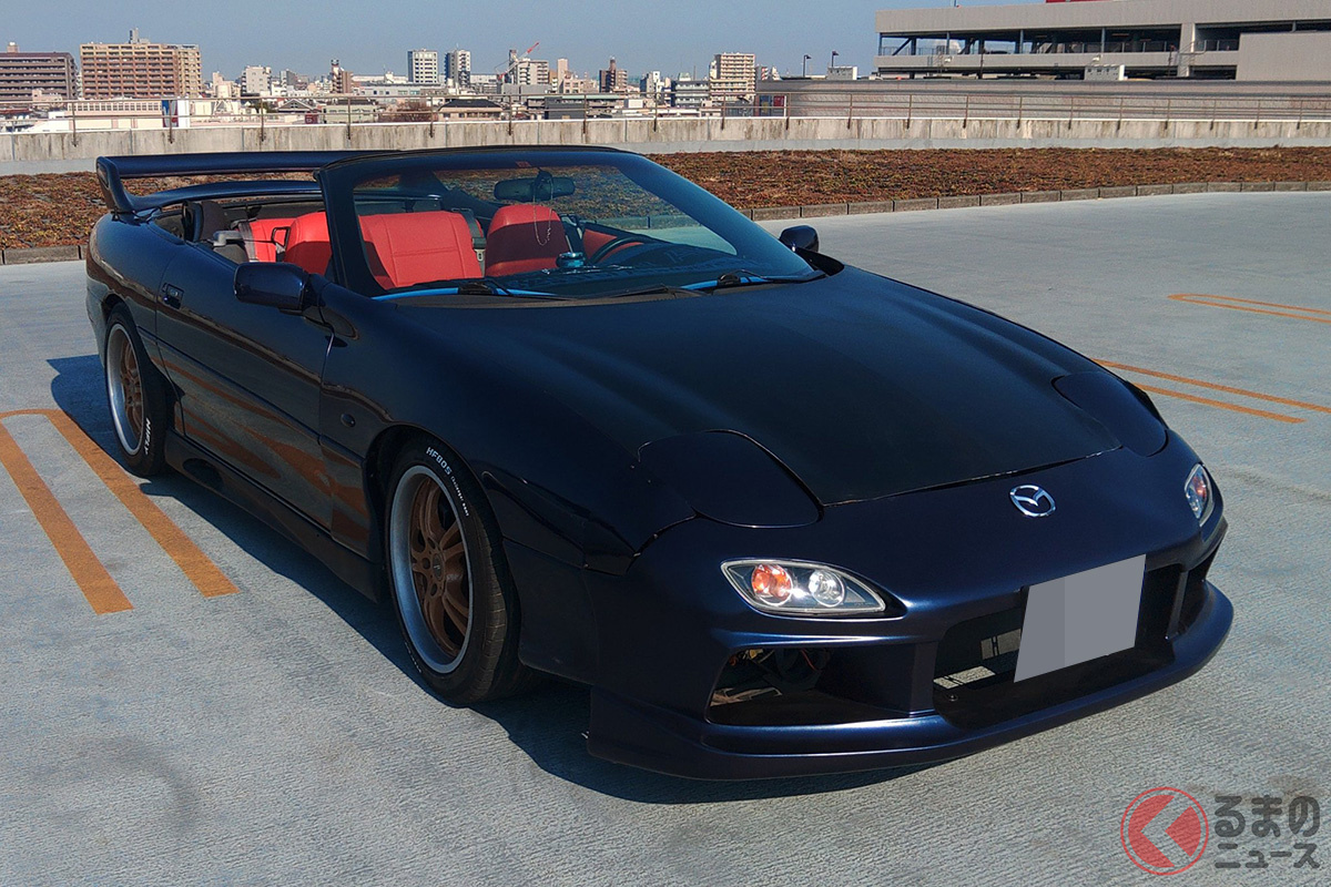 「マツダ車なの…?」 屋根あき「RX-7カブリオレ」SNS投稿で注目! ロータリー非搭載なドロドロ音に驚愕!? 意外なベース車とは
