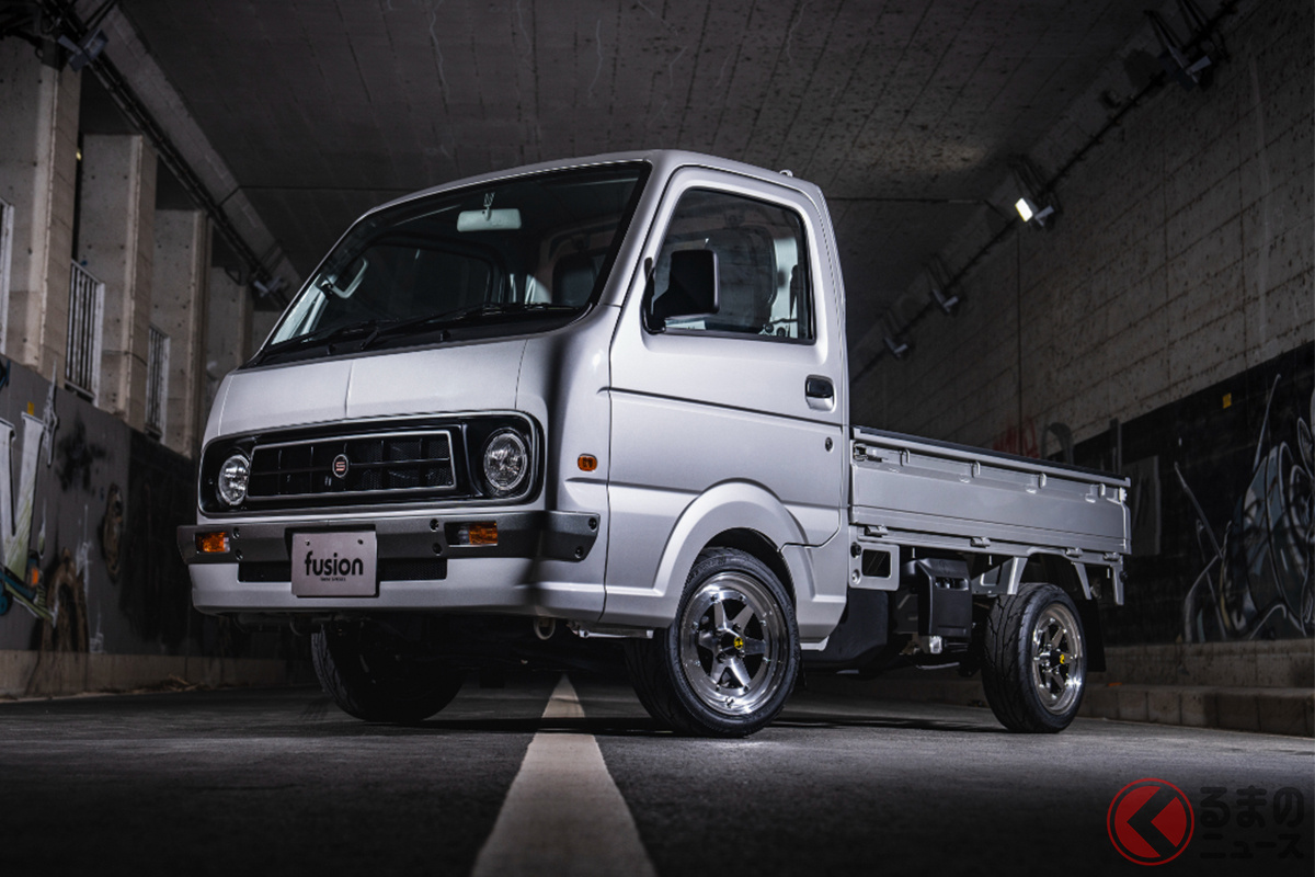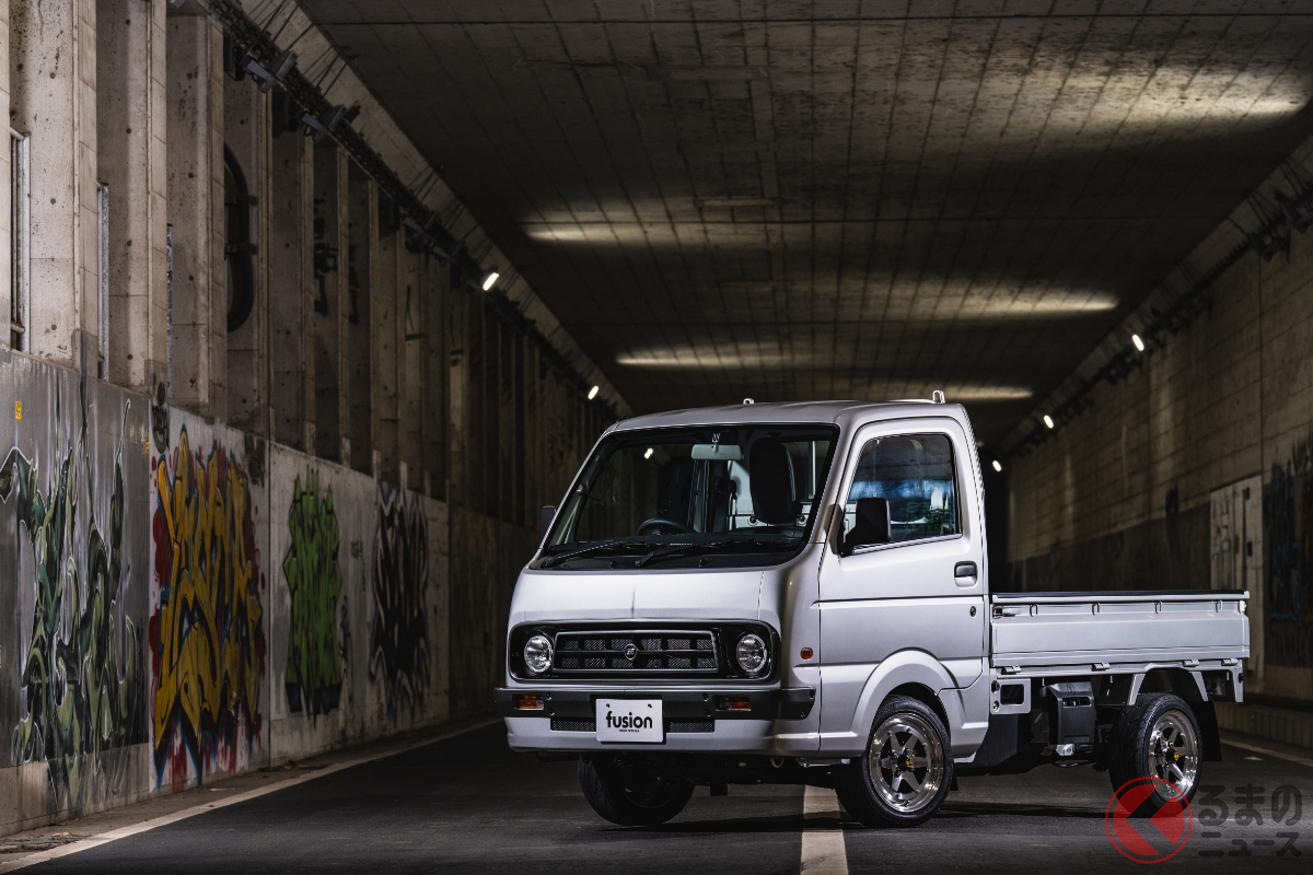 約215万円! “サニトラ”顔のスズキ「キャリイ」発表! “旧車デザイン”が超カッコイイ「新コンプリートマシン」! 昭和レトロな「fusion」のカスタムモデル販売へ