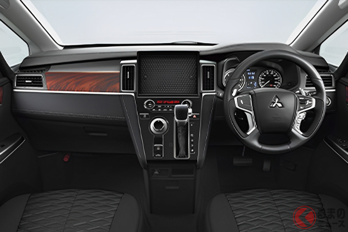 三菱「最新“3列8人乗り”ミニバン」がスゴイ! “ウッド調×本革”の高級内装&「両側電動スライドドア」標準装備! オフロードもヨユーの「デリカD:5」最安モデルとは?