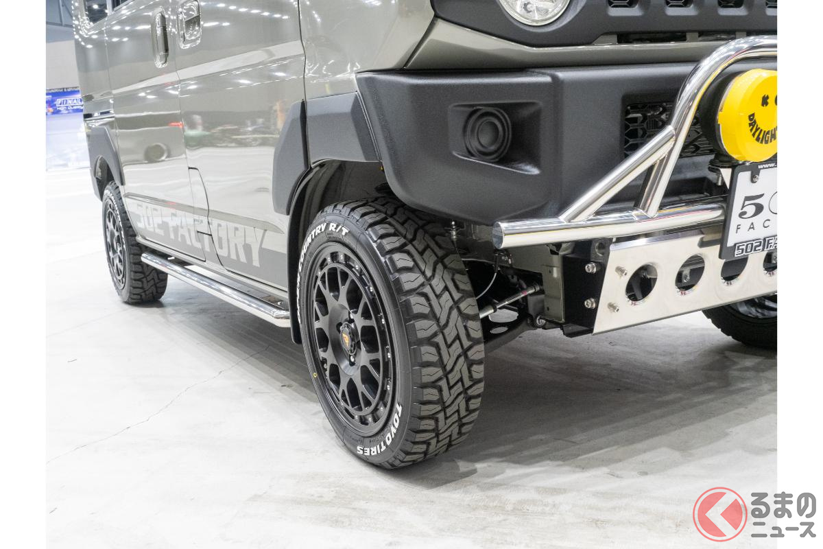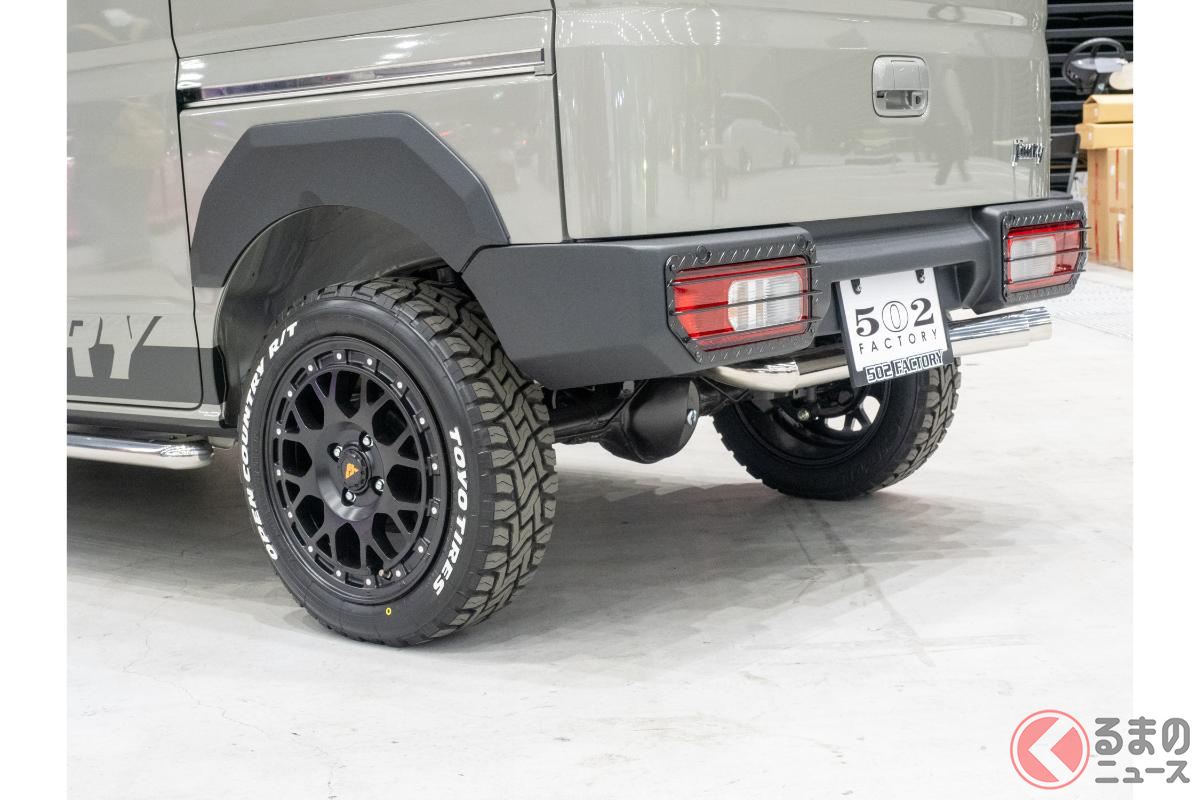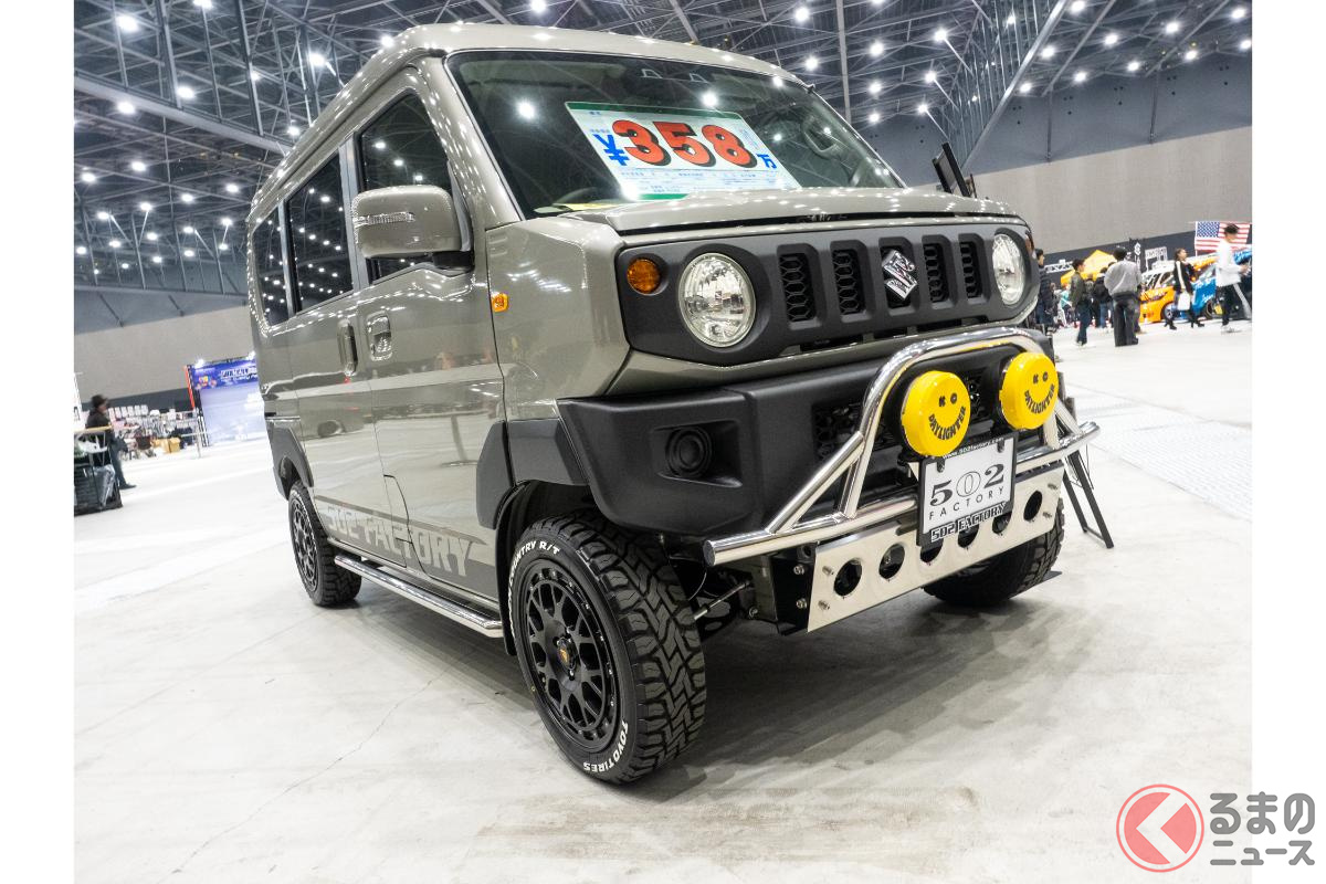 約358万円! スズキ「“軽”バンSUV!?」登場! “ジムニー顔”&リアバンパー採用! オバフェンもイイ“エブリイカスタム”「502factory ジムリィ」とは