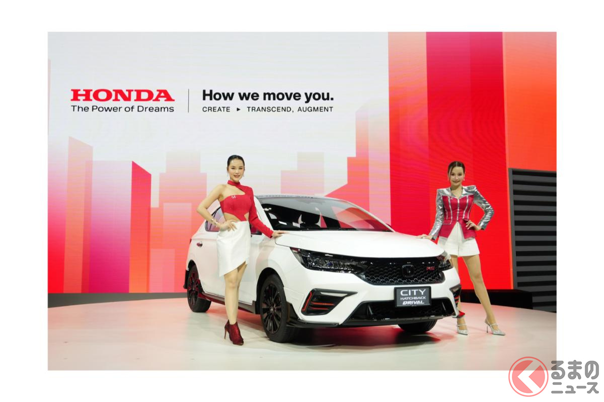 ホンダ「新シティ」発表! 精悍エアロ&黒感高めた「コンパクト“ハッチ”」! 赤内装もイイ“全長4.3m級モデル”「DRIVAL」泰国に登場