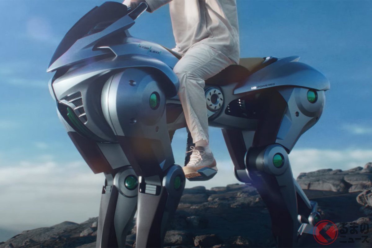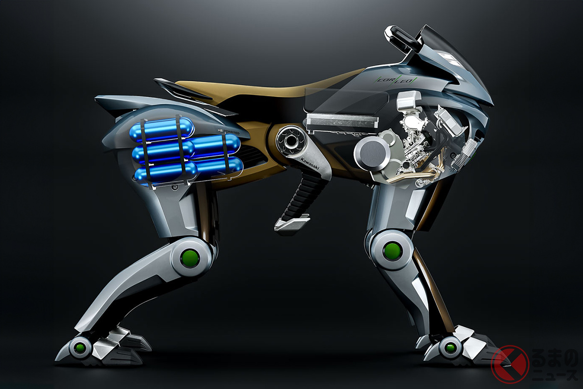 川崎重工が斬新「“4脚”モビリティ」発表! 「150cc水素エンジン」×「直感操作」採用! 草原も岩場も“駆け抜ける”「コルレオ」大阪万博で展示へ