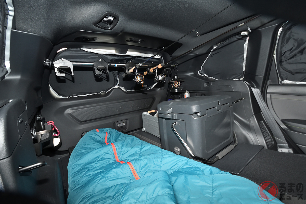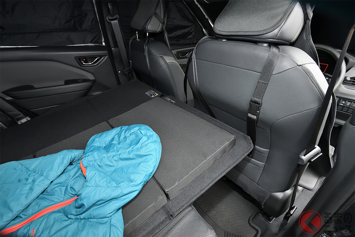 スバル新型「フォレスター」車中泊仕様が登場!? 真っ暗車内×フルフラット荷室でめちゃ快適に寝られる! 「スゴいアクセサリー」新設定!
