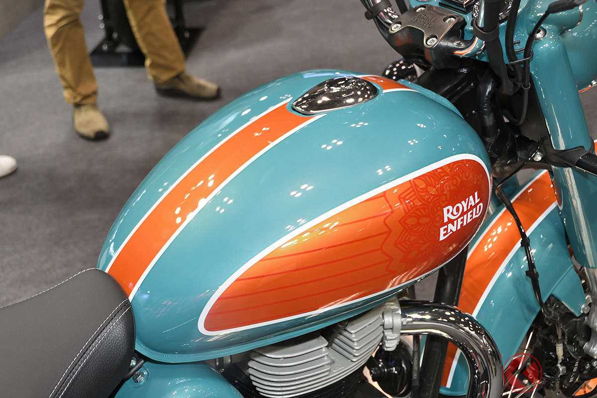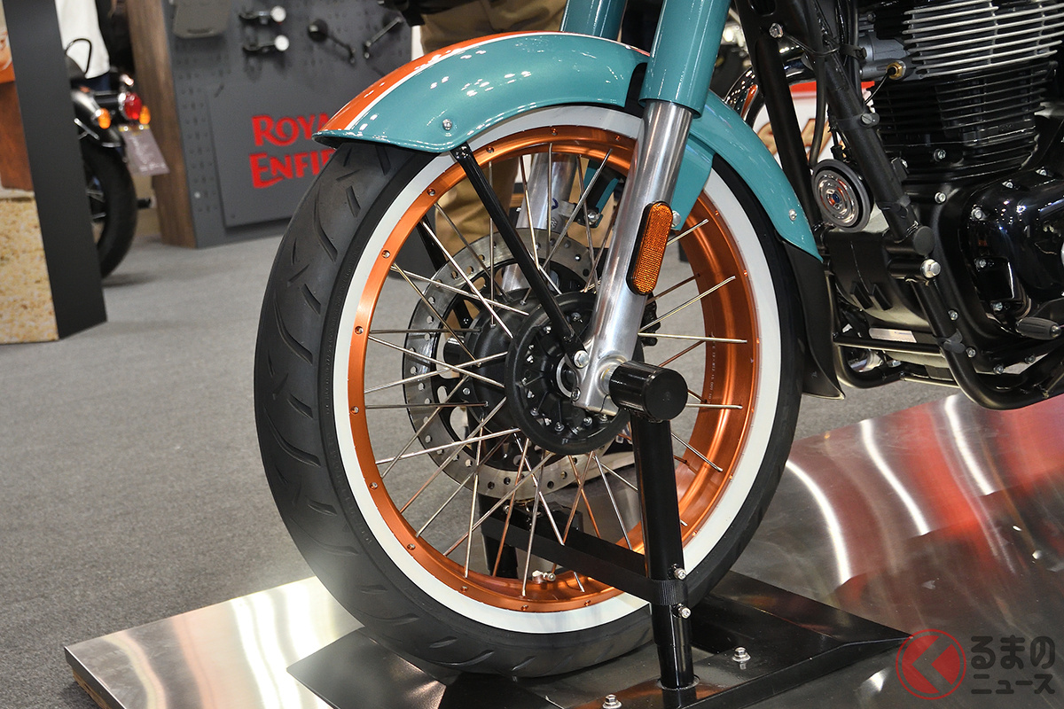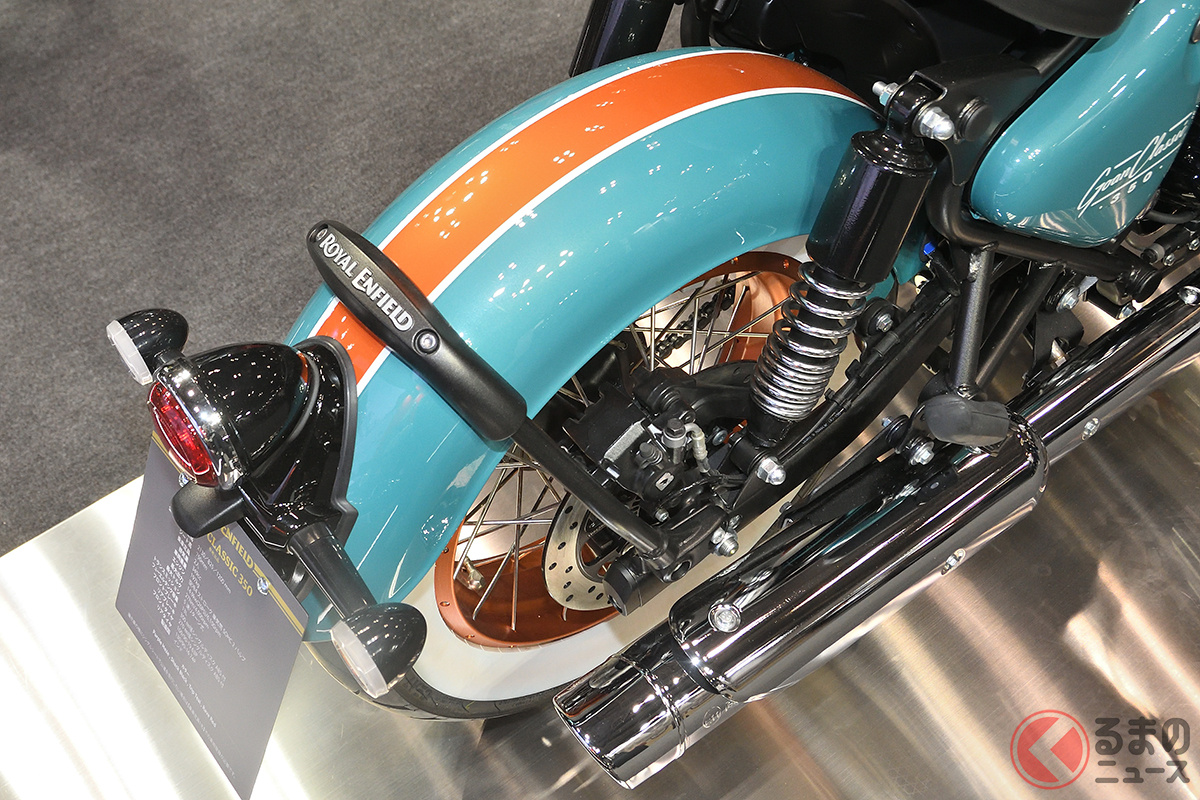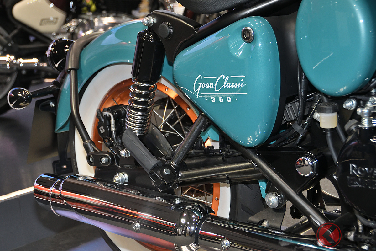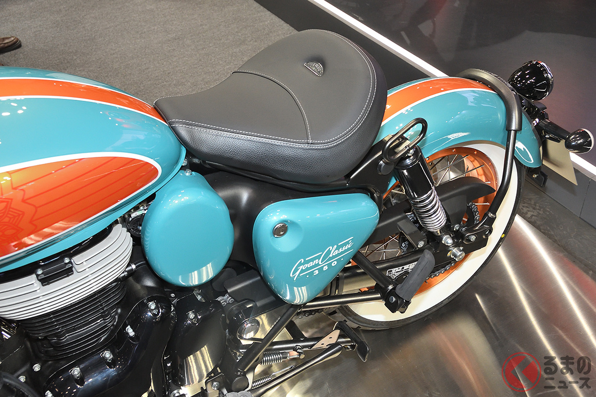 ロイヤルエンフィールド新型「ネオクラシックバイク」実車展示! 斬新カラー&ローシートがチルい! ボバースタイルの「ゴアンクラシック350」登場!