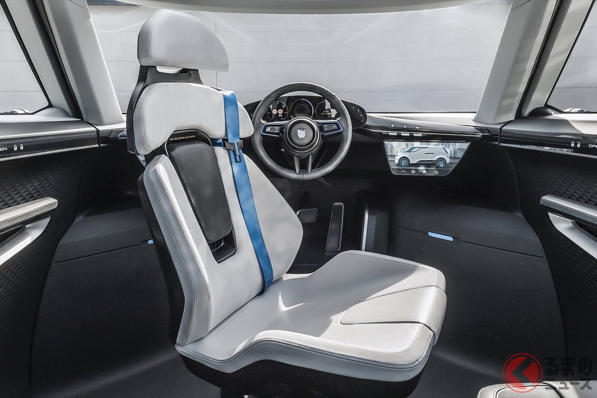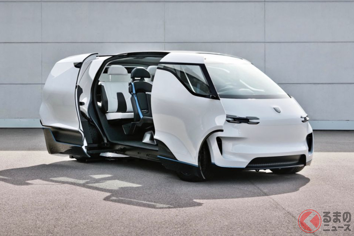 ポルシェ斬新「タマゴ型“ミニバン”」に注目! “めちゃ薄シート”の「3列6人乗り」仕様! 「大型スライドドア」搭載のファミリーカー!? 「レンディエンスト」ドイツ仕様とは?